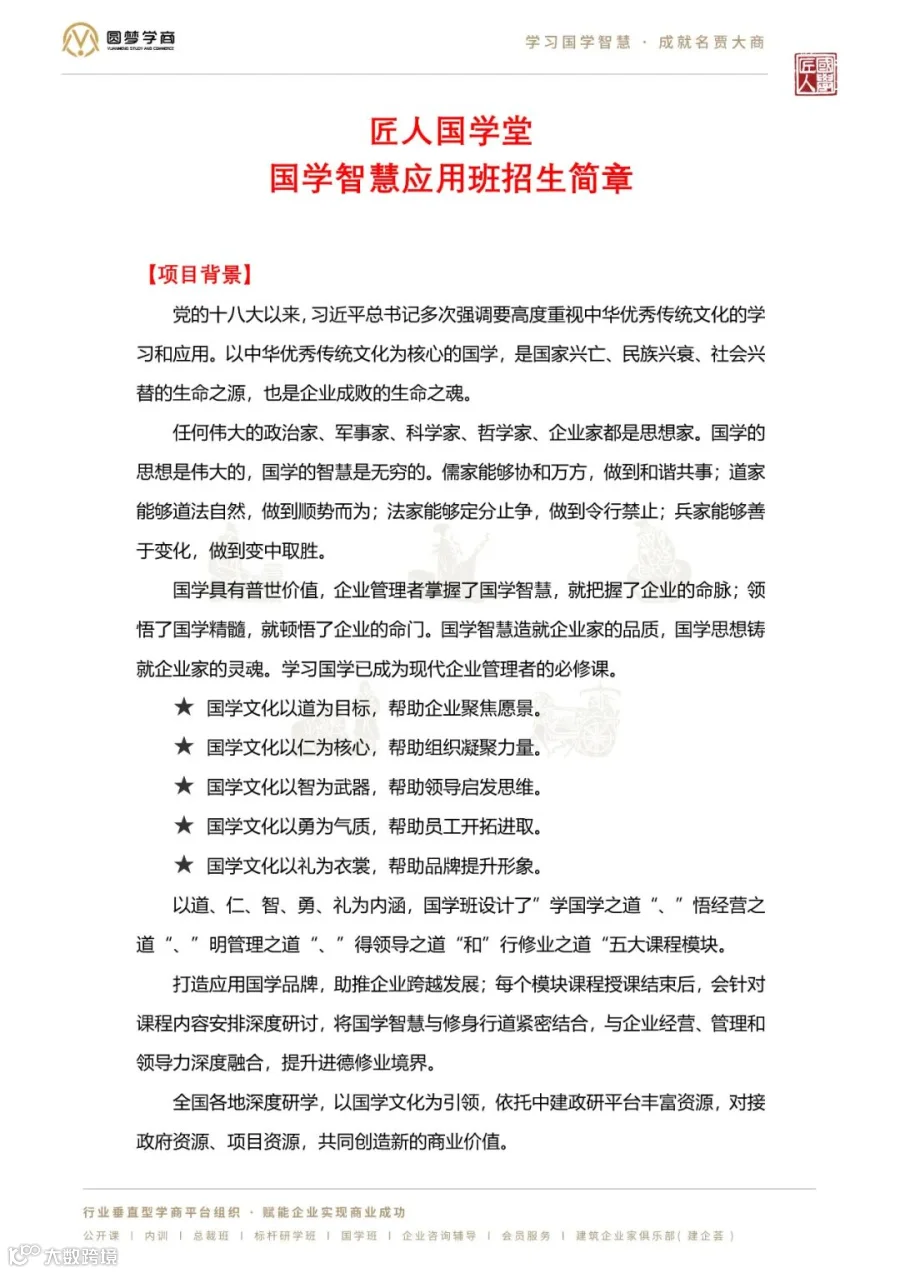 匠人国学堂 | 国学智慧应用班 招生简章 新产业新赛道