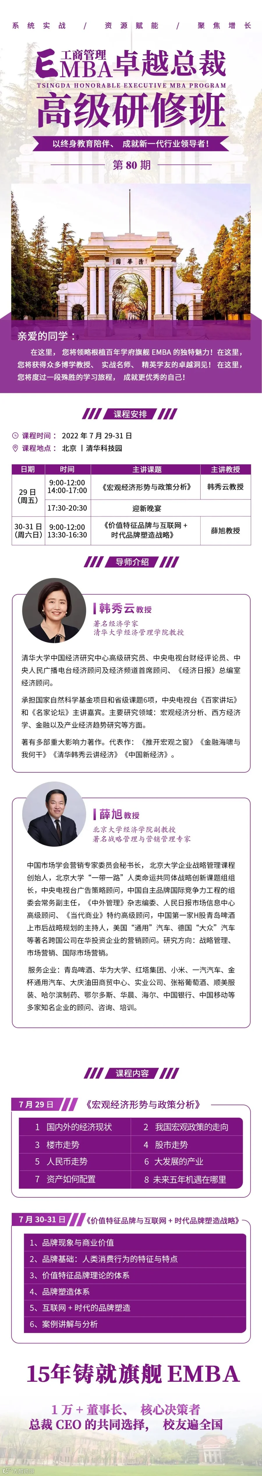 欢迎加入:清大·工商管理(EMBA)总裁高级研修班