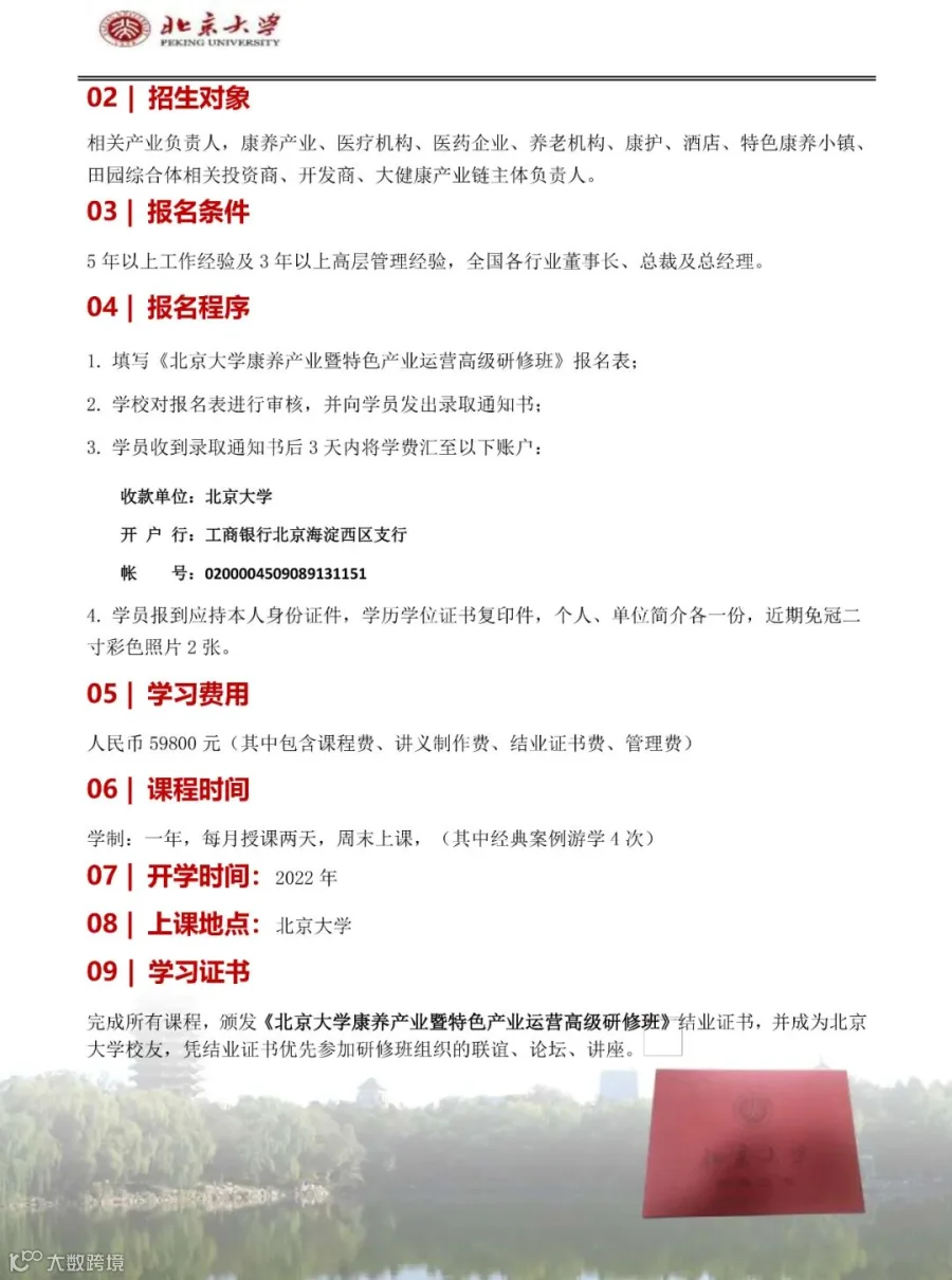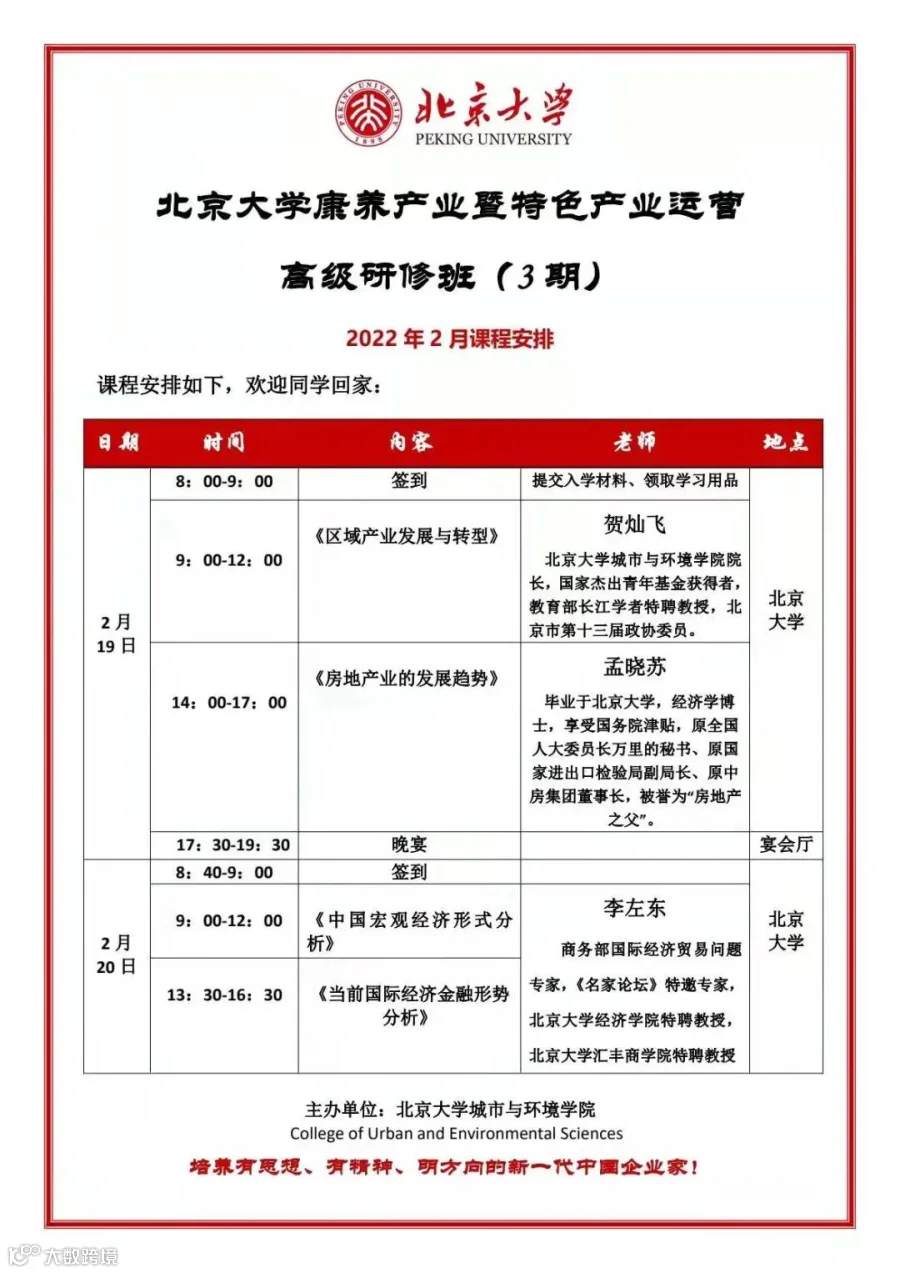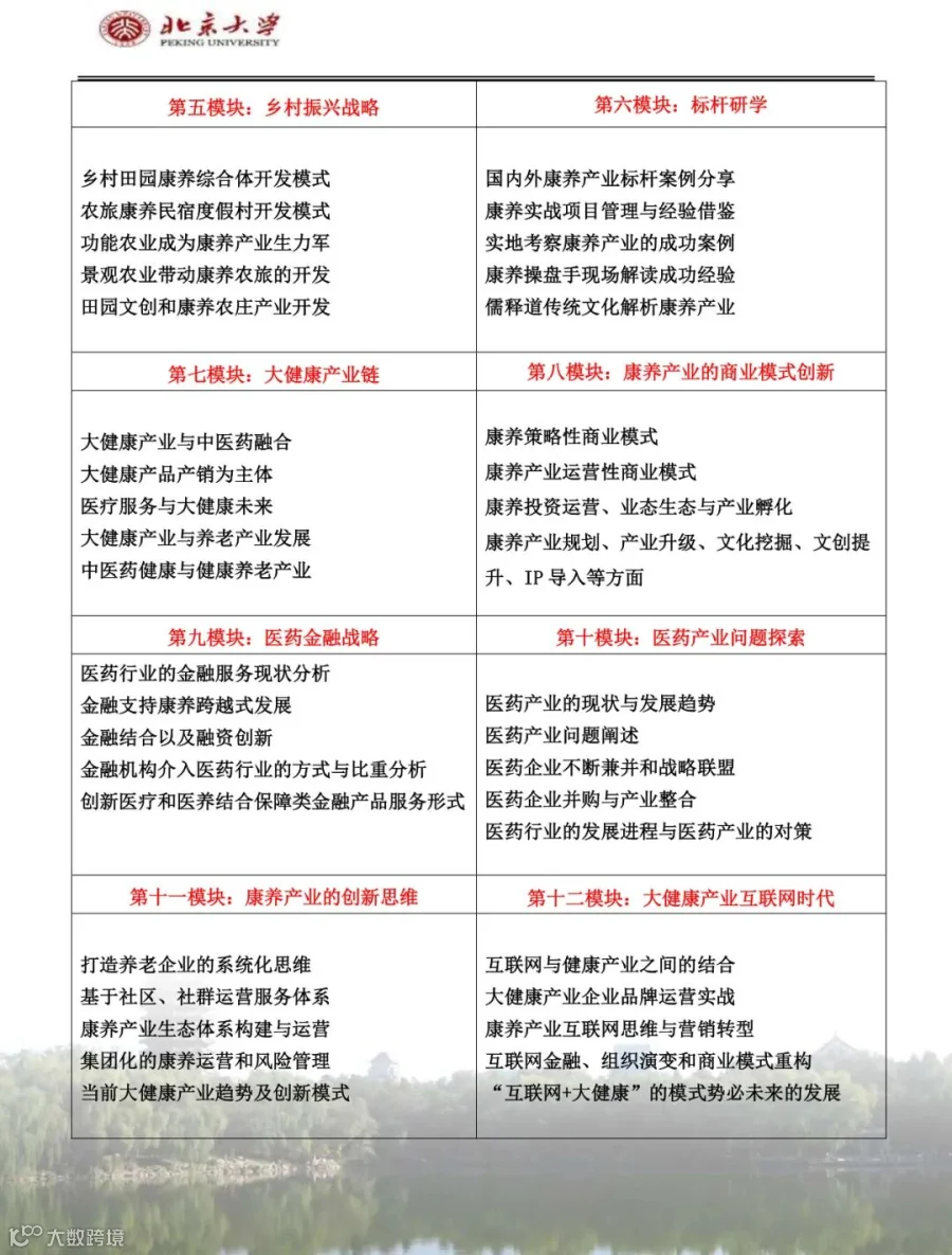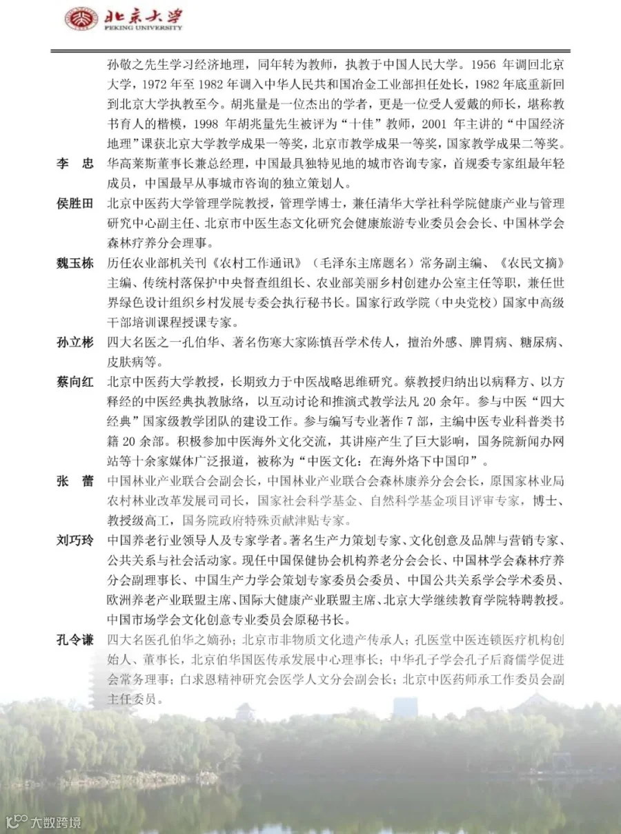 课程详询:李老师 139 1144 5864(加微信备注:北大康养产业)
