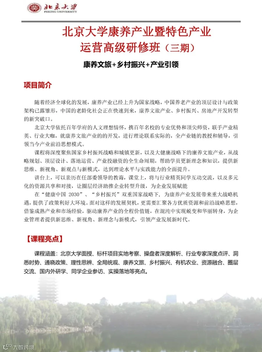 2022年| 北大康养产业暨特色产业运营高级研修班——康养文旅+乡村振兴+产业引领兴