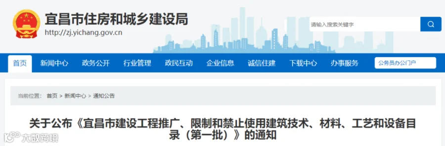2021年2月1日,宜昌市发布第一批禁限目录,禁限使用扣件式、轮扣式、碗扣式等定型钢管模板支架。