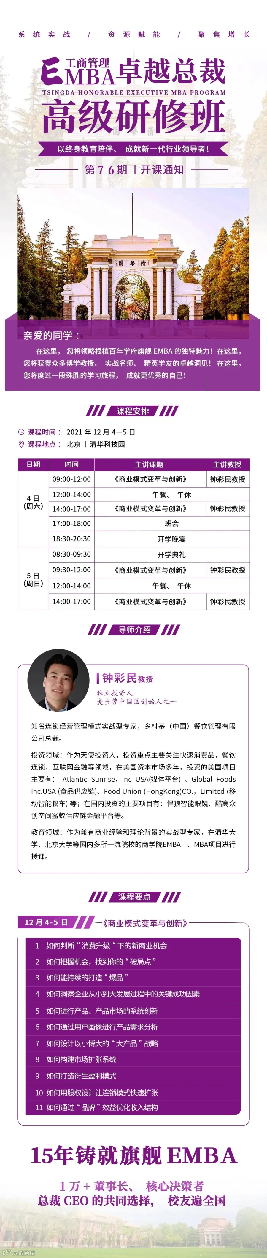导读:11月20-21日|第77期 清大工商管理(EMBA)卓越总裁高级研修班开学典礼——旗舰EMBA