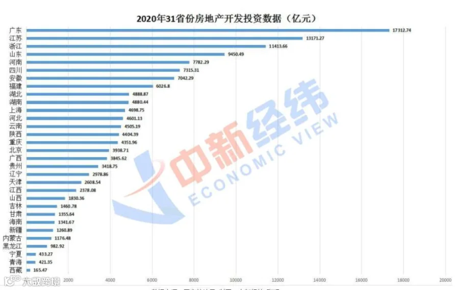 从2015年-2020年,广东房地产开发投资额已连续6年第一。