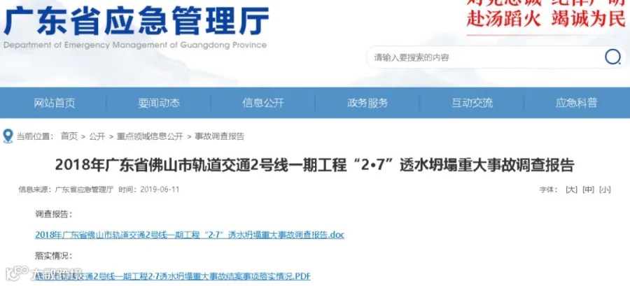 调查报告全文链接:18人被追责!广州地铁塌陷致3死事故报告:拱顶未及时支护,透水引发坍塌
