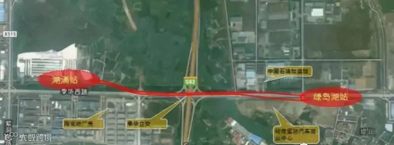 湖涌站~绿岛湖站区间隧道位置平面图 ↑