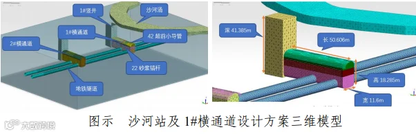 沙河站施工单位采用暗挖法进行横通道施工,分三个台级分级进行。正在进行的第一级台阶施工进展到第50米(总长50.606米)。