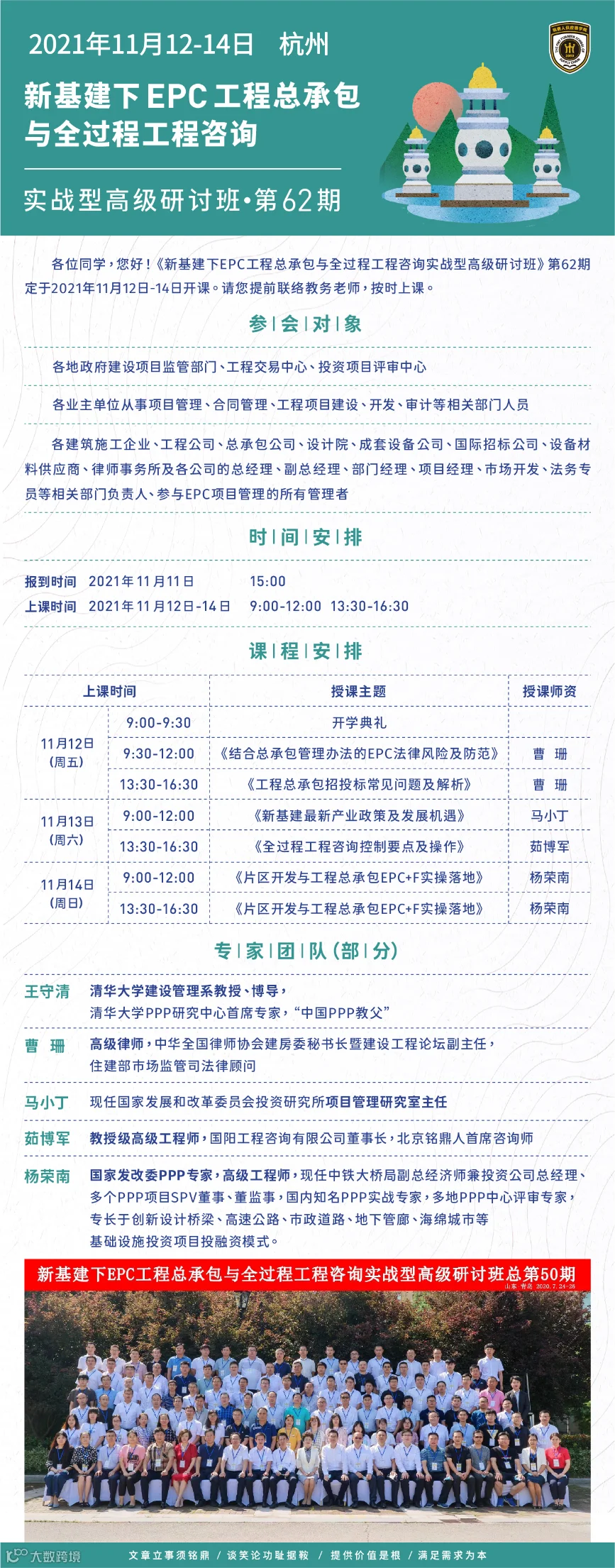欢迎加入:新基建下EPC工程总承包与全过程工程咨询—实战型高级研讨班