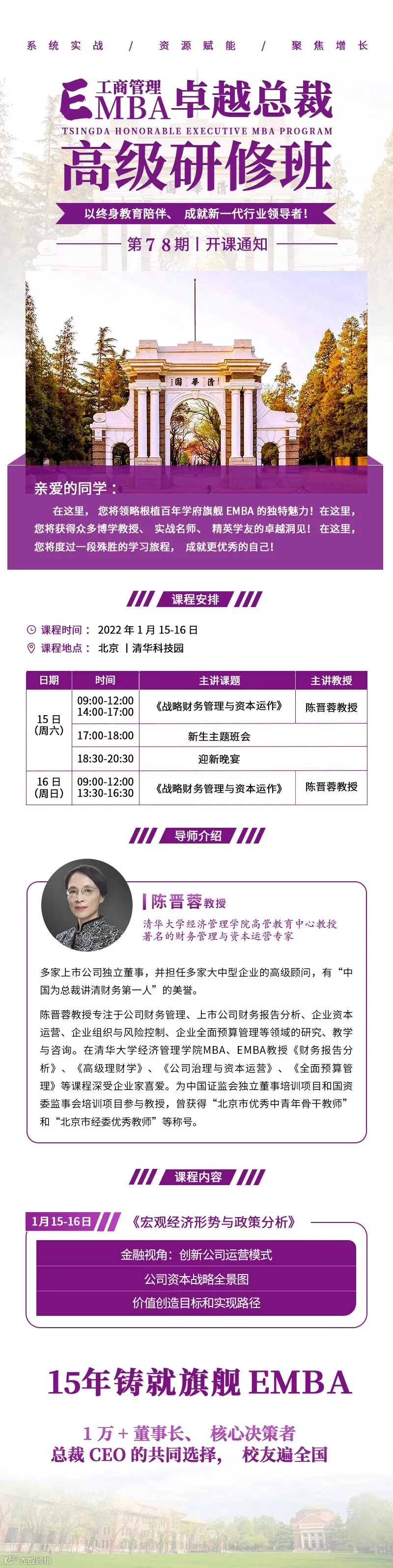 导读:2022年01月15日-16日|第78期 清大工商管理(EMBA)卓越总裁高级研修班开学典礼——旗舰EMBA