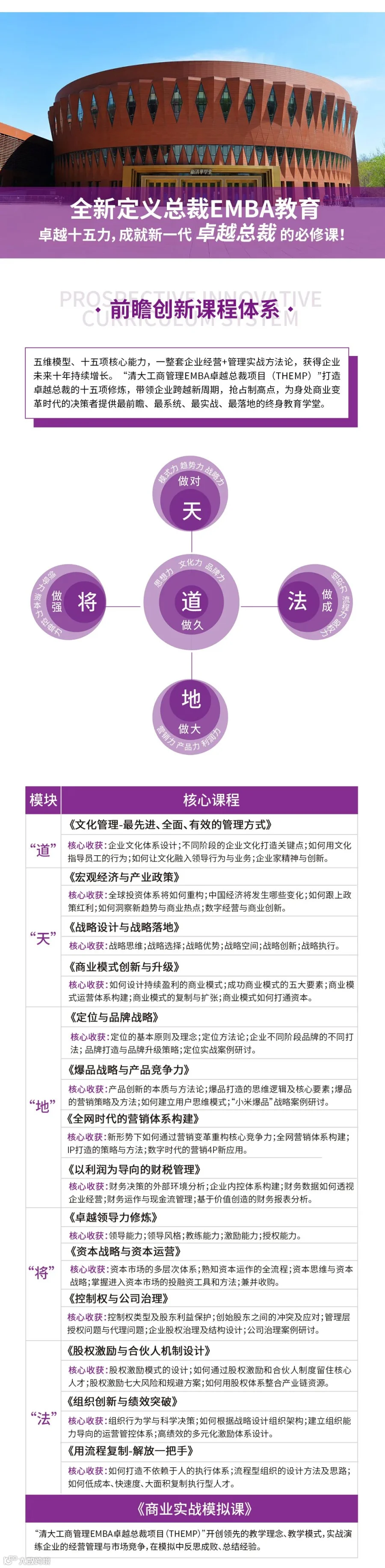 欢迎加入:清大·工商管理(EMBA)总裁高级研修班