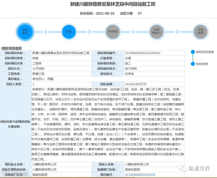 去年11月,川藏铁路雅安至林芝段先期开工段“两隧一桥”色季拉山隧道、康定2号隧道和大渡河特大桥工程正式开工建设。今年4月,雅安至新都桥、波密至林芝段(不含“两隧一桥”)站前工程,即一头一尾两区段正式开工建设。此次招标,预示着川藏铁路剩余段落即将全线开工。根据招标公告内容,川藏铁路新都桥至波密段计划2021年12月1日开工,建设工期11年,计划2032年11月竣工。