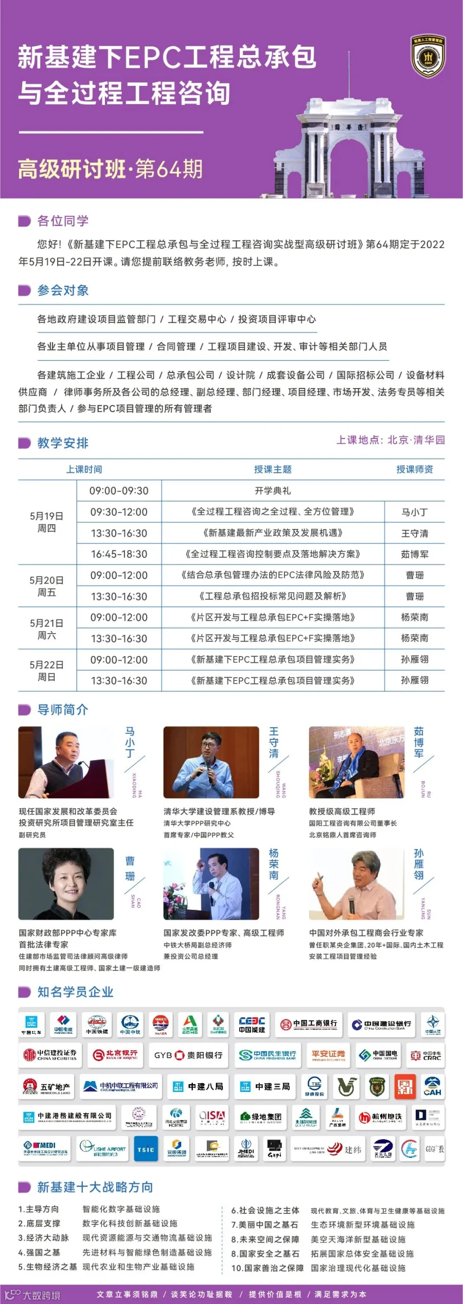 欢迎加入:新基建下EPC工程总承包与全过程工程咨询—实战型高级研讨班