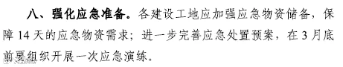 3月20日前,所有工地分5类场景开展疫情应急处置演练。