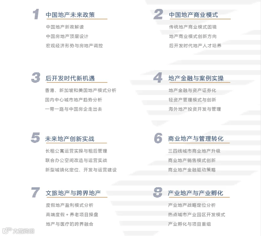 ★ 未来之路课程和世界顶尖地产学院美国纽约大学地产学院、新加坡国立大学地产学院、东京大学等展开合作,为中国地产经营者提供优质的地产国际课程和海外地产项目标杆参访机会,提升国际视野,洞悉行业变革。