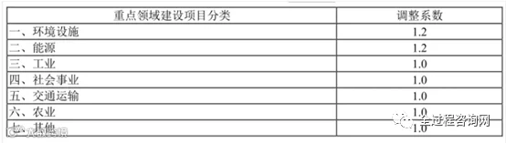 项目类型系数按下表取值: