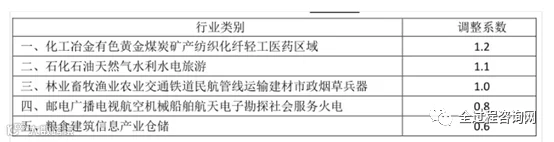 本合同行业调整系数按下表取值为: