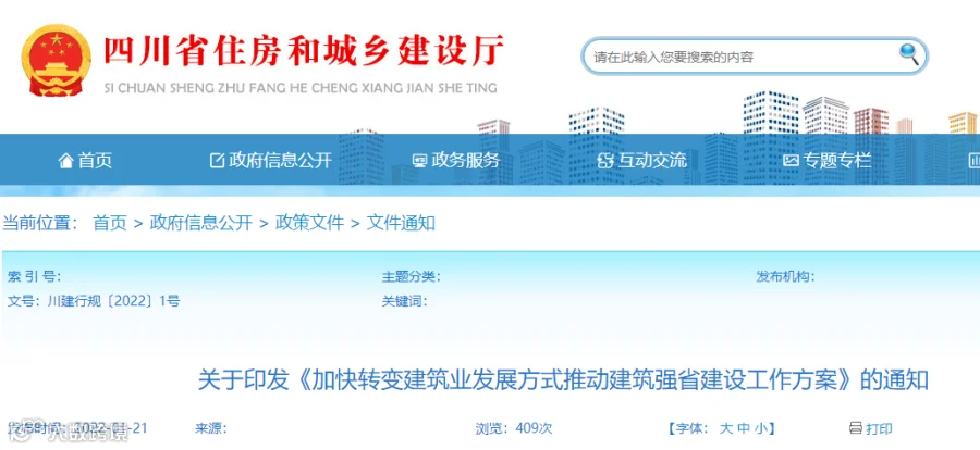 近日,四川省住建厅等6部门印发《加快转变建筑业发展方式推动建筑强省建设工作方案》,自印发之日起施行。