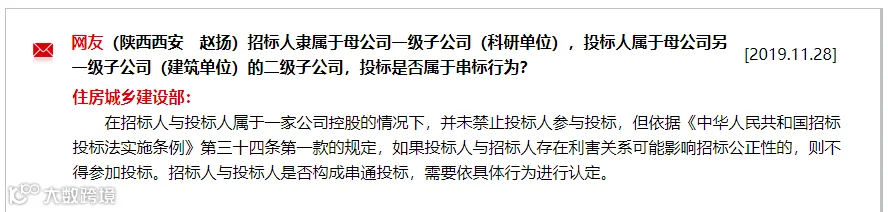 母公司招标,子公司能否来投标?子公司招标,子公司能否来投标?来看看财政部、国家发改委、住建部的答复。