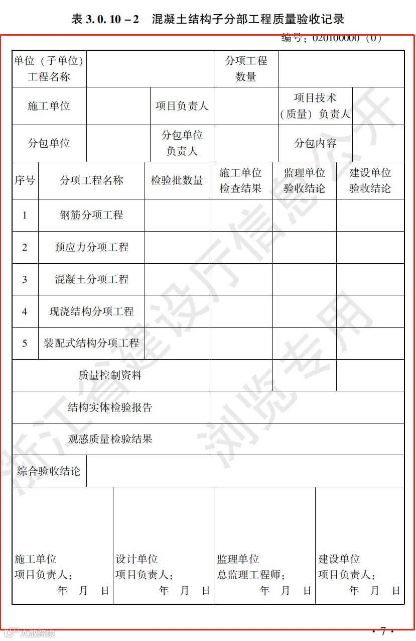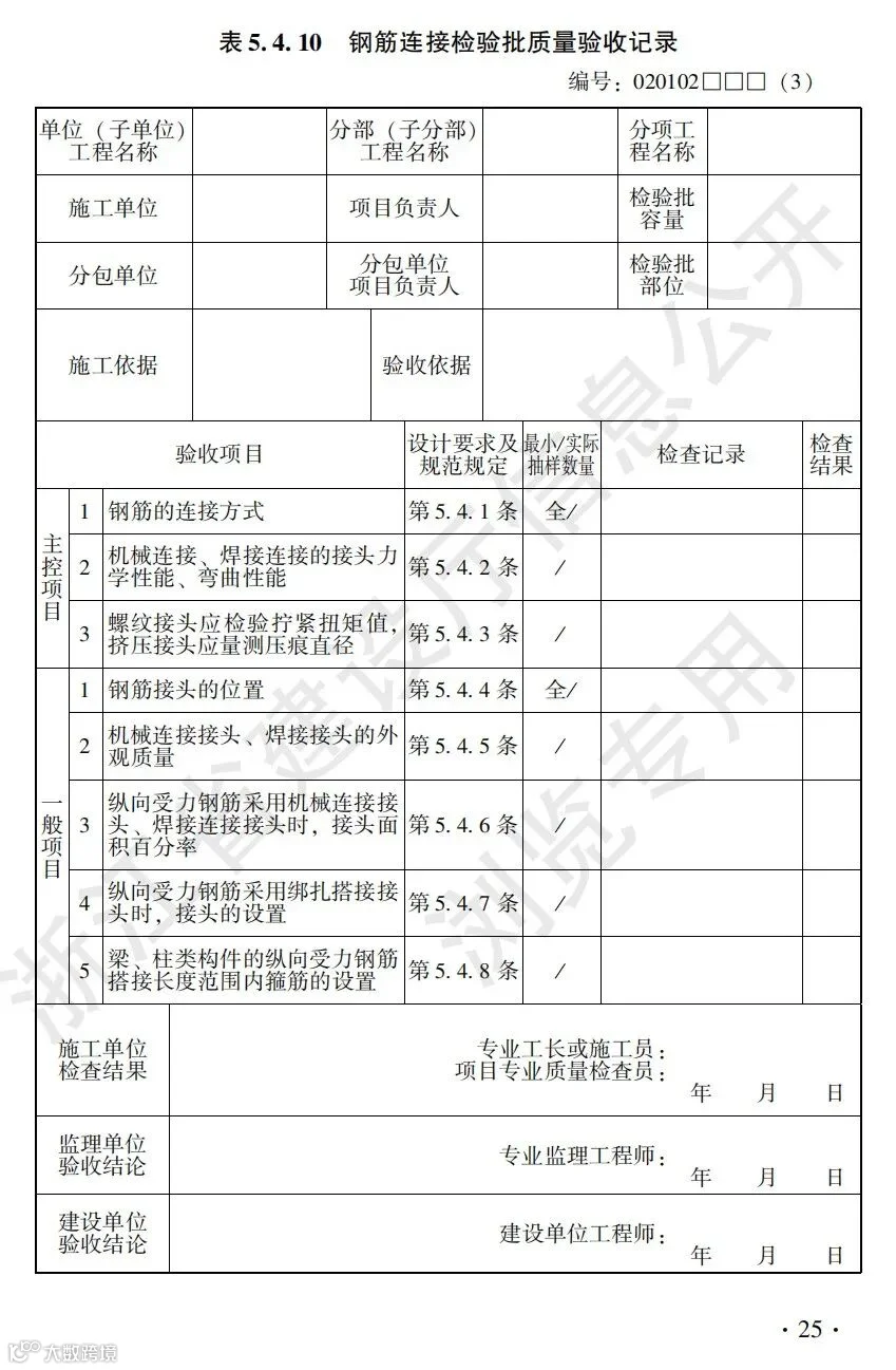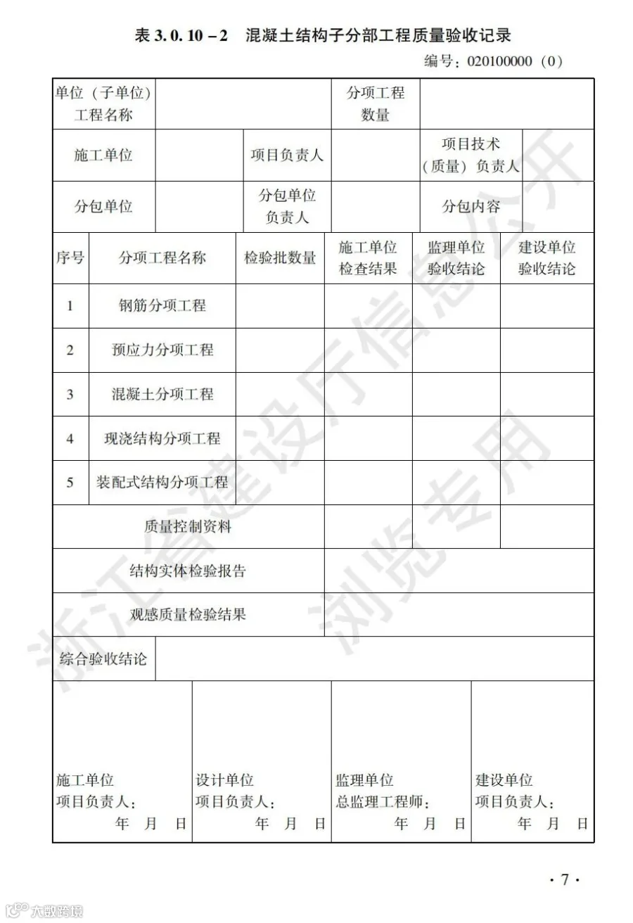 混凝土结构工程施工质量验收检查用表标准