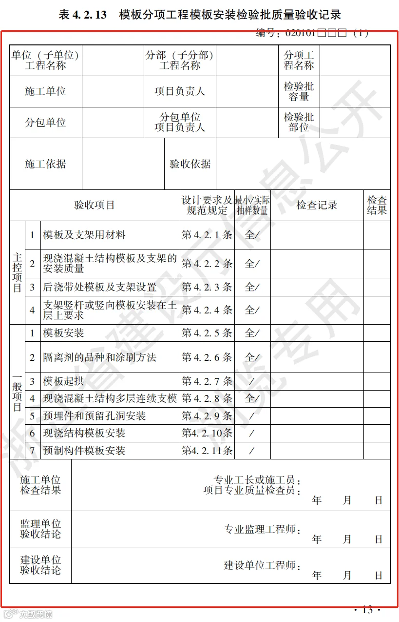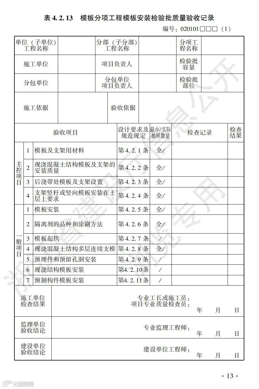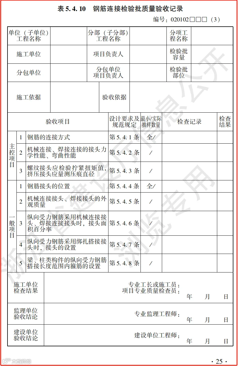 混凝土结构工程施工质量验收检查用表标准