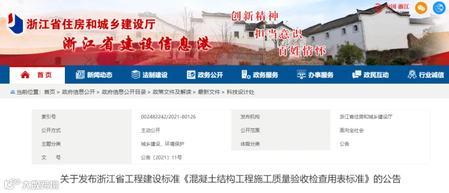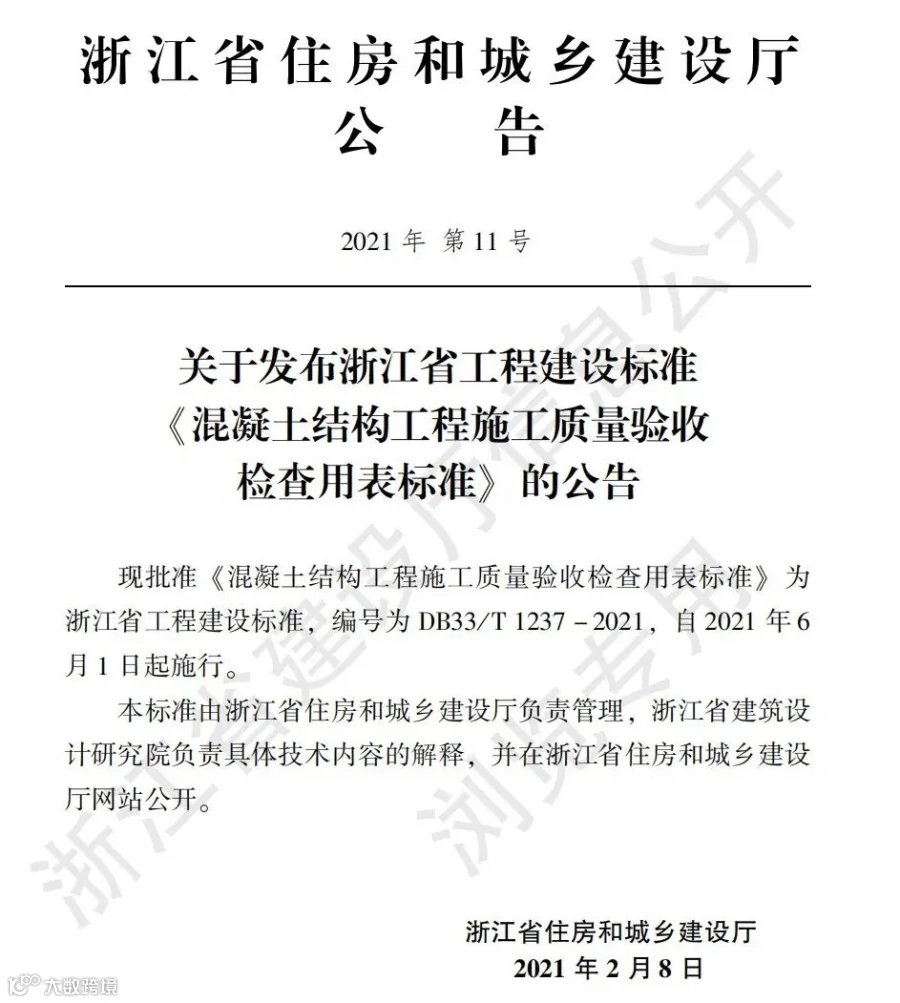4月30日,浙江省住建厅发布《关于发布浙江省工程建设标准<混凝土结构工程施工质量验收检查用表标准>的公告》。明确自2021年6月1日起施行。其中有几个重点,值得注意,下面让我们一起来看看吧!