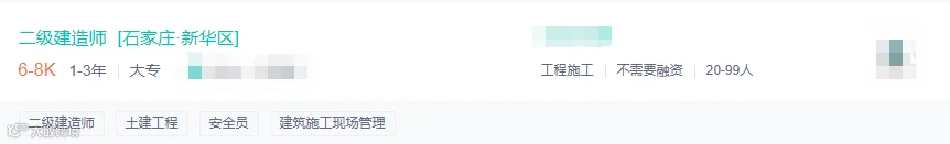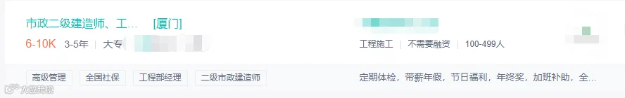 附:三线城市建工企业招聘二级建造师时对经验的要求: