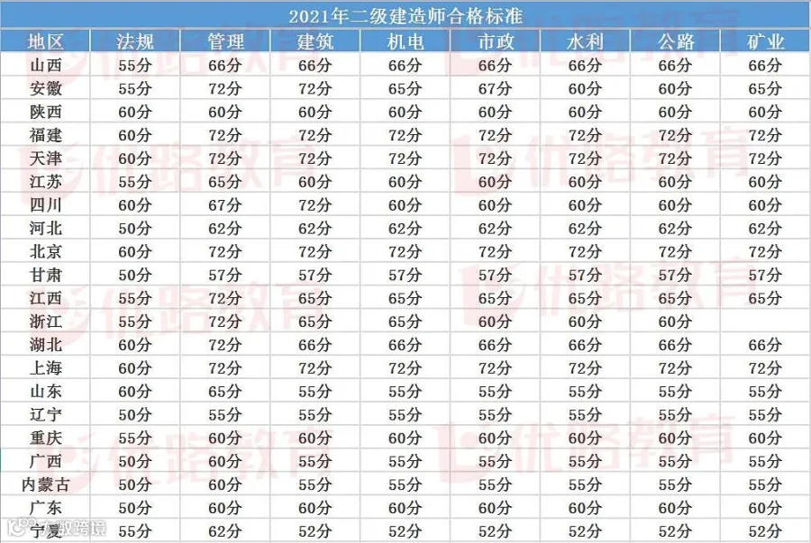 比如上海,在此前的官方文件中就已经表示,今年将要向第一梯度看齐,再如福建在16、17年的时候合格分数线与北京广东一样,所以这个几个省的二级建造师也并不容易。