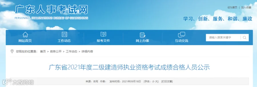 近日广东人事考试网发布《广东省2021年度二级建造师执业资格考试成绩合格人员公示》,共66597人。