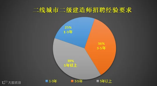 相比于一线城市,二线城市对学历的要求不是特别严格,且即使在同一个城市,工资差异跨度也比较大。并且二建城市3-5年工作经验的二级建造师要求比例也有大幅上升。
