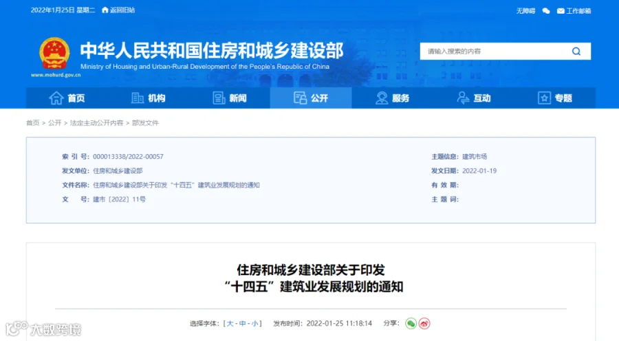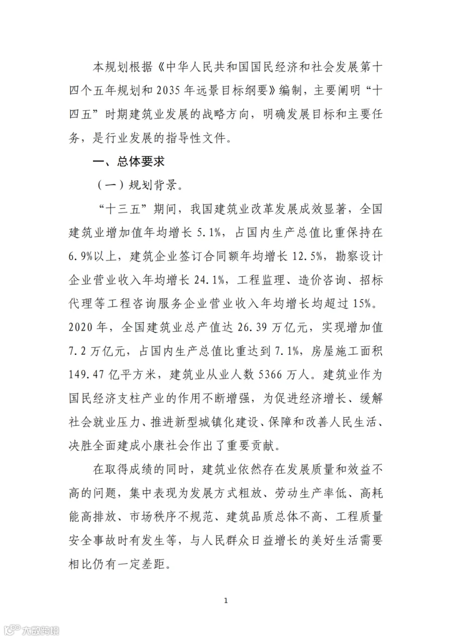 住房和城乡建设部关于印发“十四五”建筑业发展规划的通知