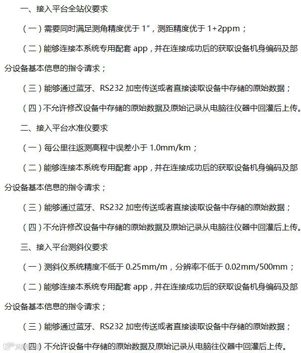 (六)监测平台的操作及监测仪器的要求,详见《平台操作手册》和《接入监测预警平台的仪器设备技术及安全规定》(附件3、4)。