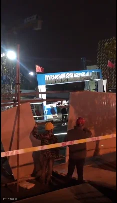 据现场一名工作人员介绍,事发时间为今天11:30左右,事故原因初步判断是大型工程车进入施工场地造成入口处施工坡道断裂。