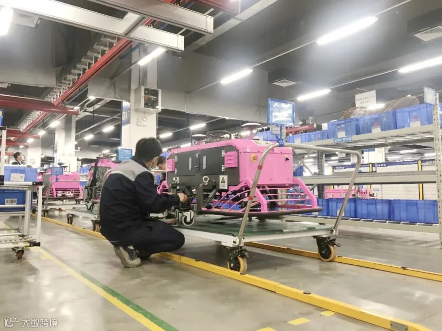 看!粉红色“高个子”智能随动布料机
