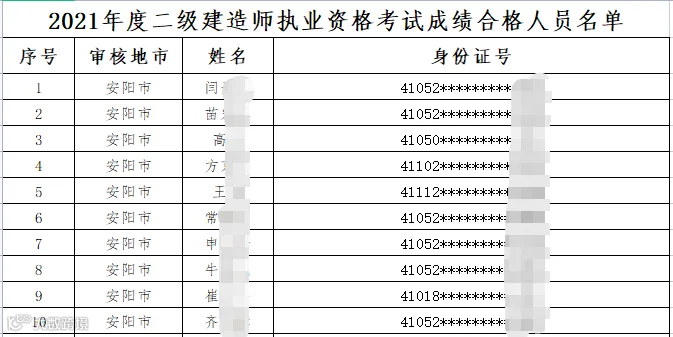 按照《关于2021年度河南省二级建造师执业资格考试有关问题的通知》(豫人社函〔2021〕60号)和《关于专业技术人员职业资格考试资格核查和证书发放管理有关具体问题的通知》(豫人社函〔2020〕40号)要求, 现对2021年度二级建造师执业资格考试成绩合格拟取得证书人员予以公示和资格核查。