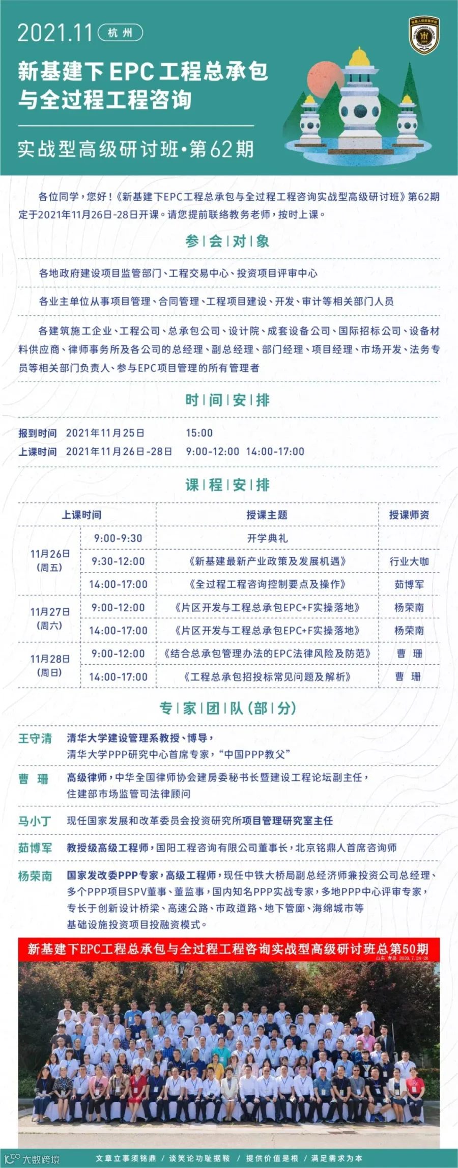 欢迎加入:新基建下EPC工程总承包与全过程工程咨询—实战型高级研讨班