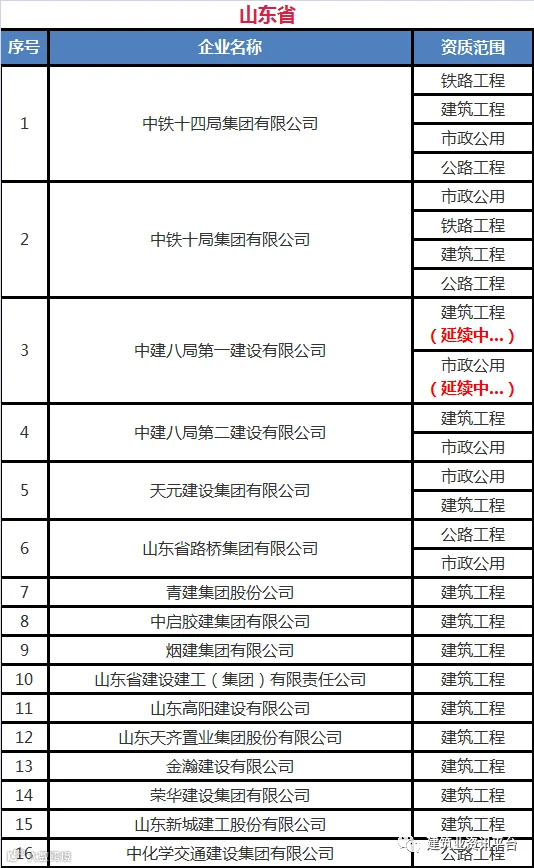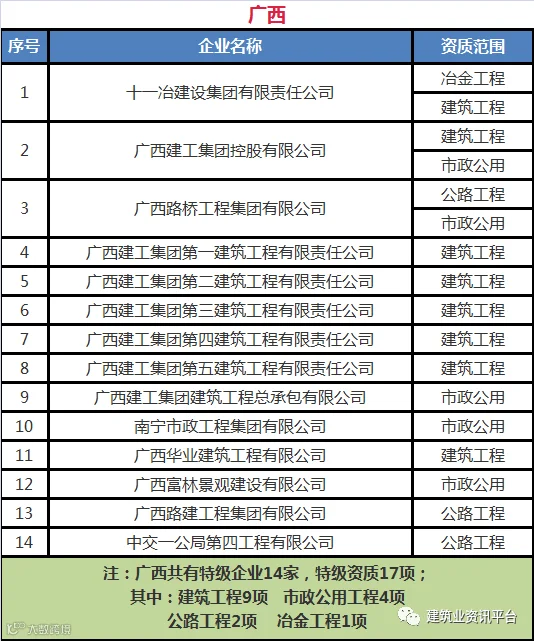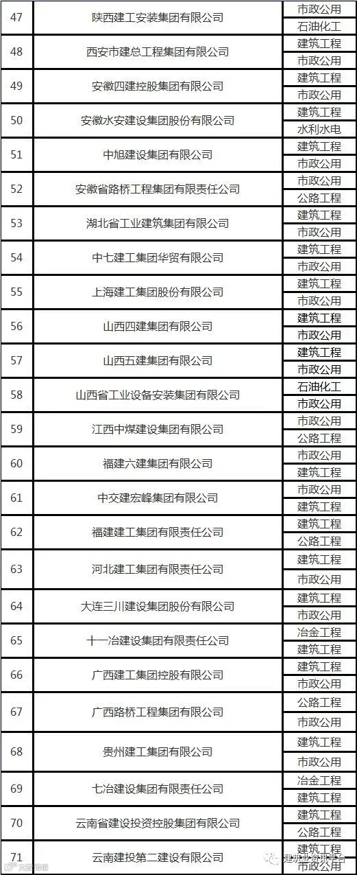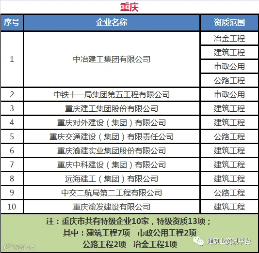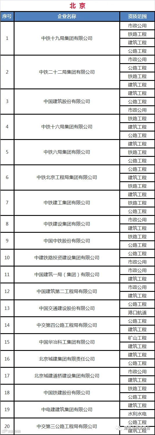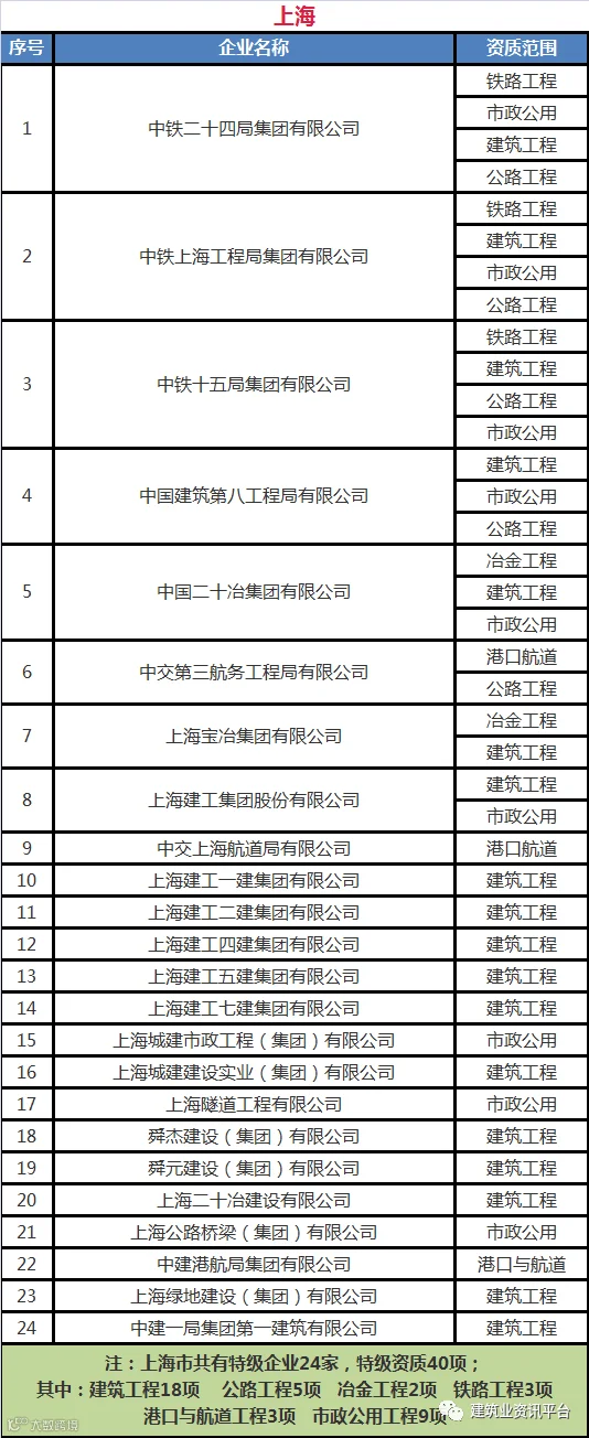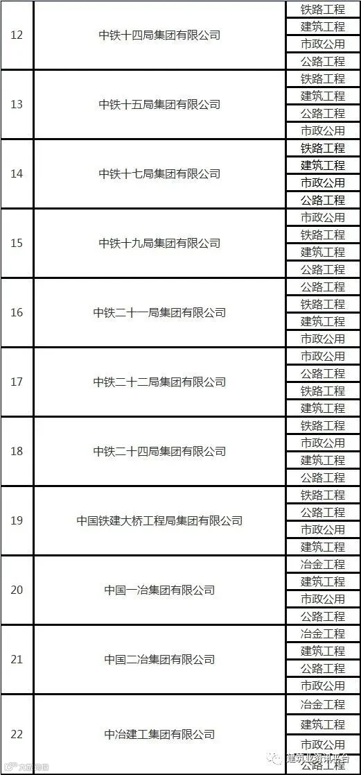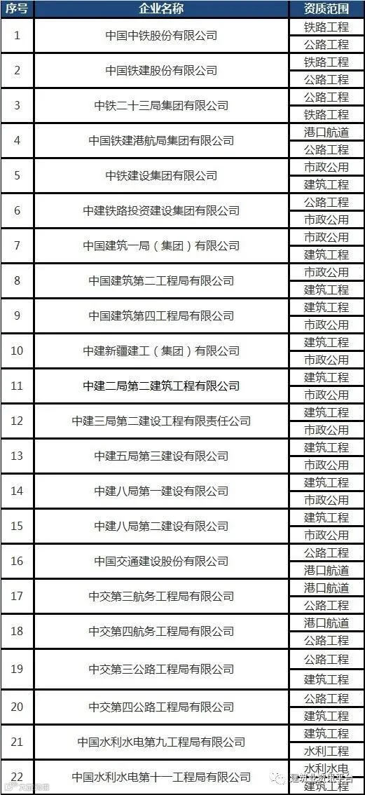 下面带大家盘点一下那些拥有总承包特级资质的企业名单: