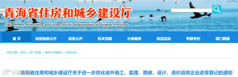 近日,青海省住建厅发布《关于进一步优化省外施工、监理、勘察、设计、造价咨询企业进青登记的通知》。