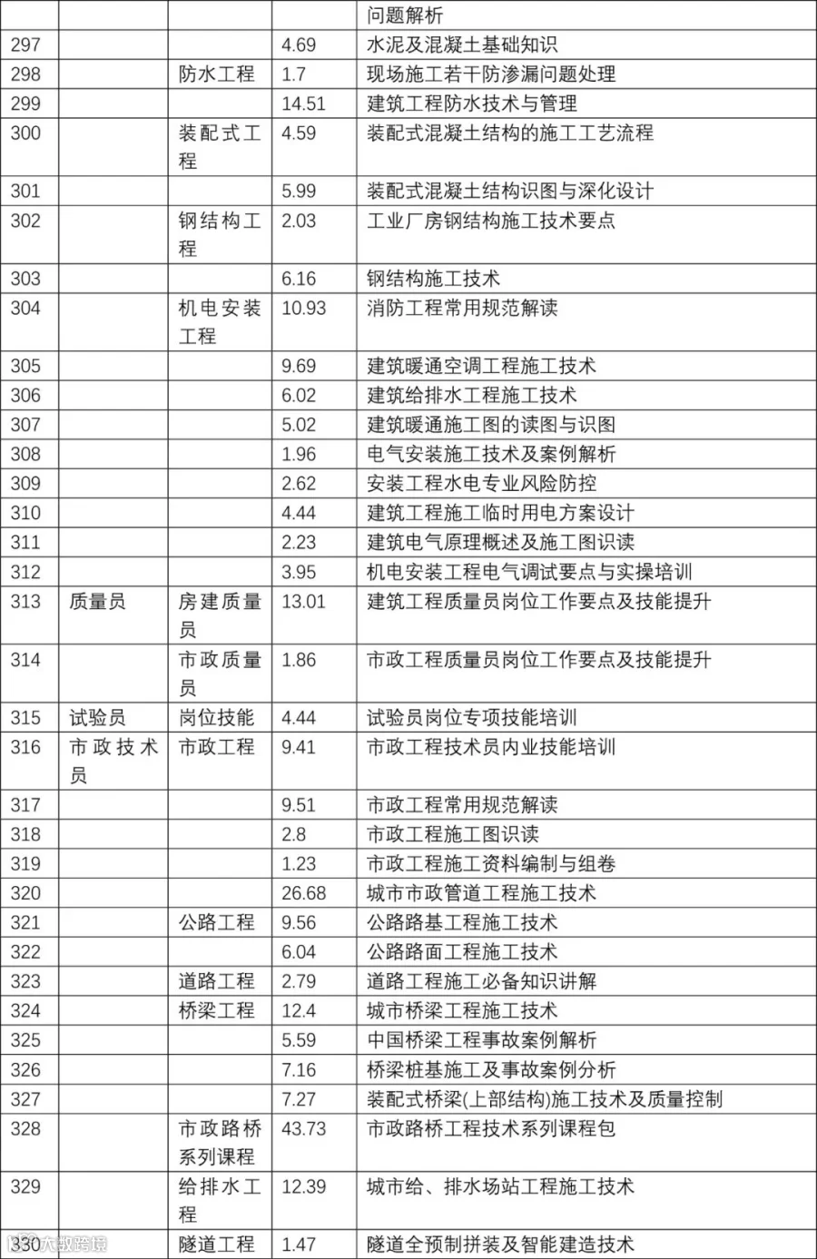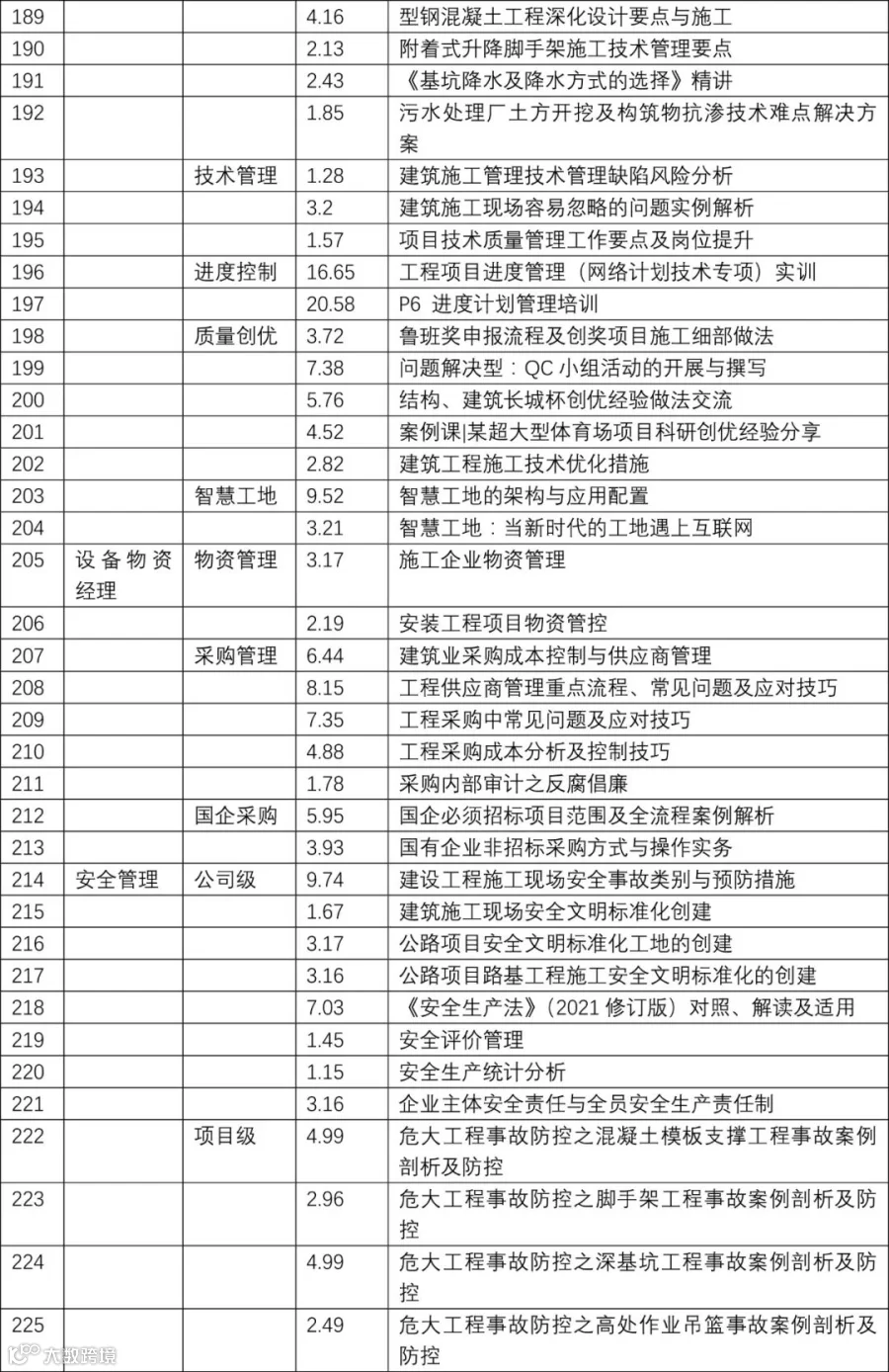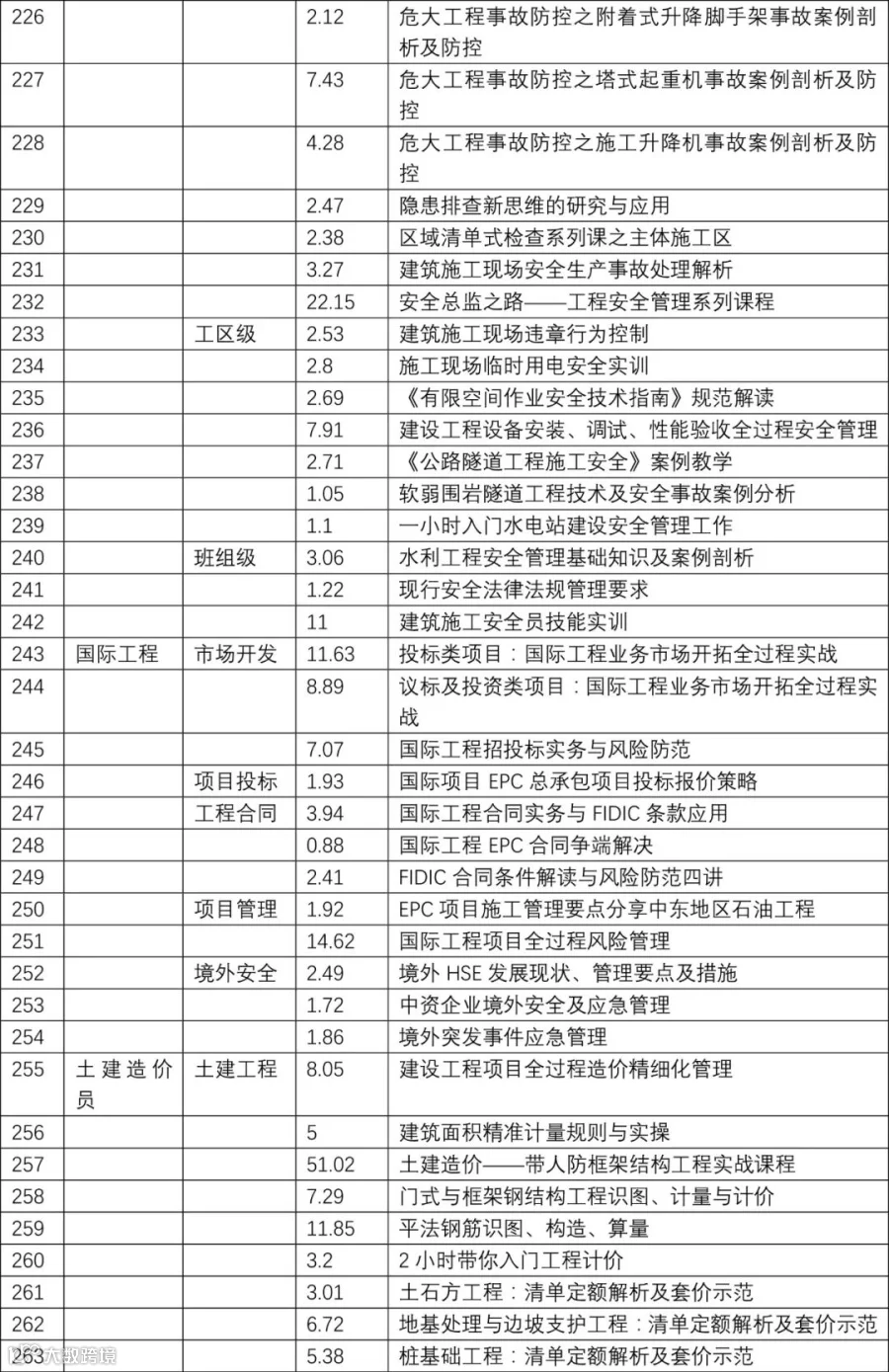 2022年 | 最新建设行业网络视频 课程主题 目录表