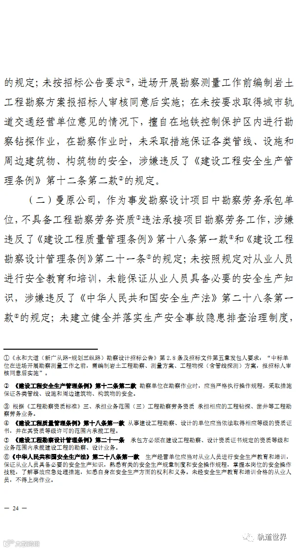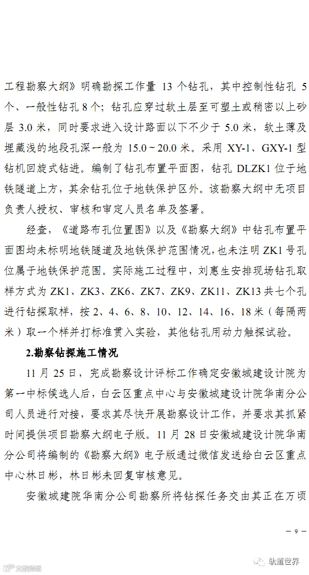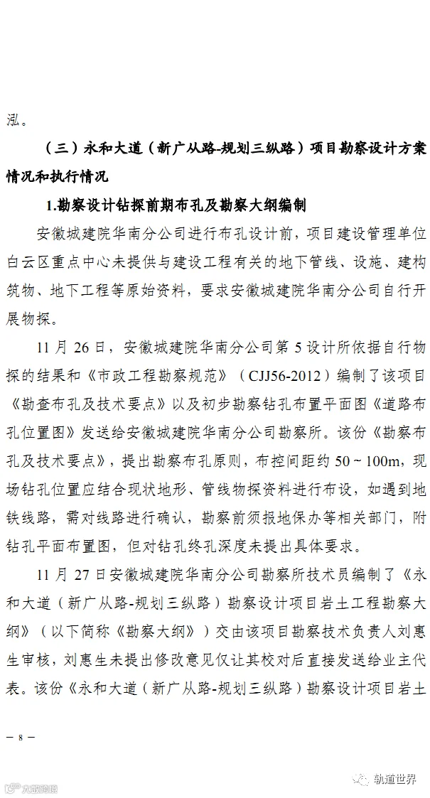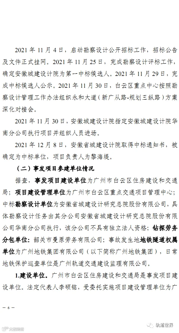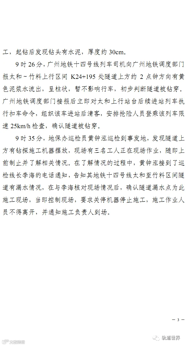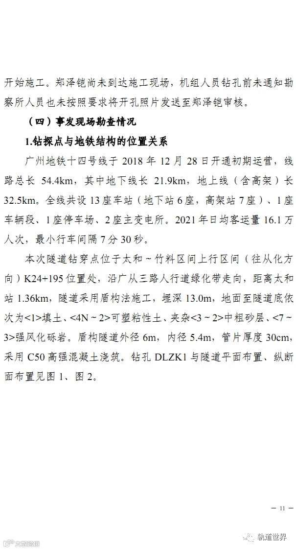 2021年12月8日清晨7时许,永和大道(新广从路-规划三纵路)项目三名勘察钻探班组人员,在广州地铁14号线太和-竹料区间隧道上方进行钻探作业时,在未通知技术人员的情况下,按照之前钻深20米的要求进行钻探施工。
