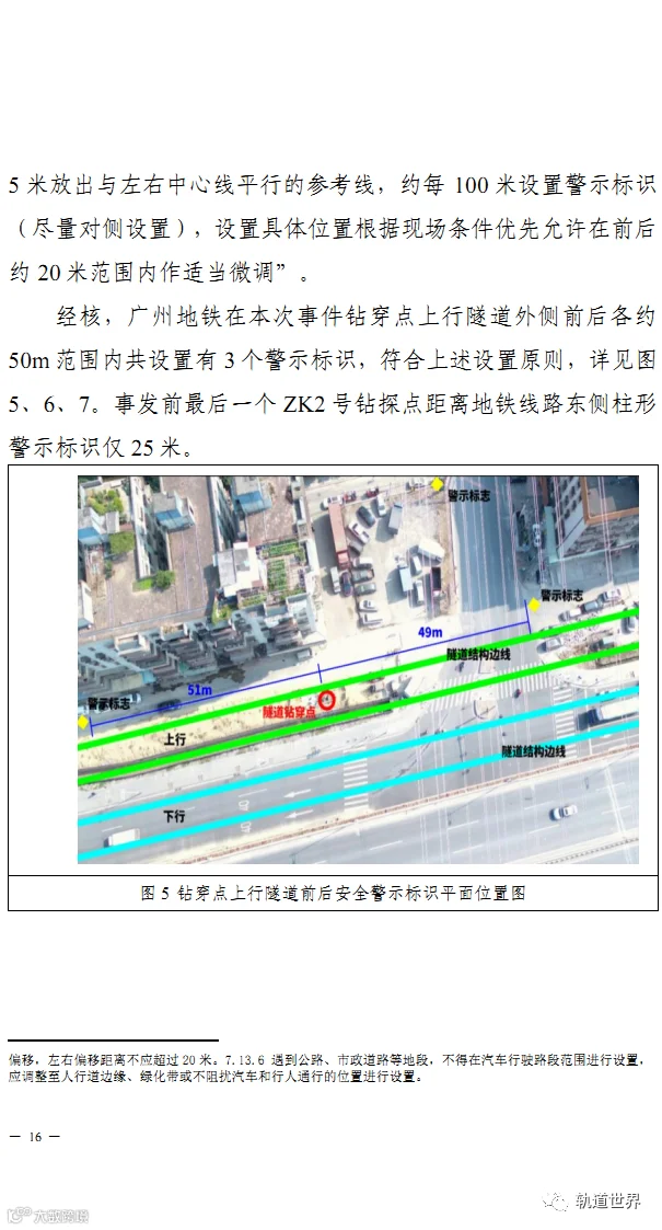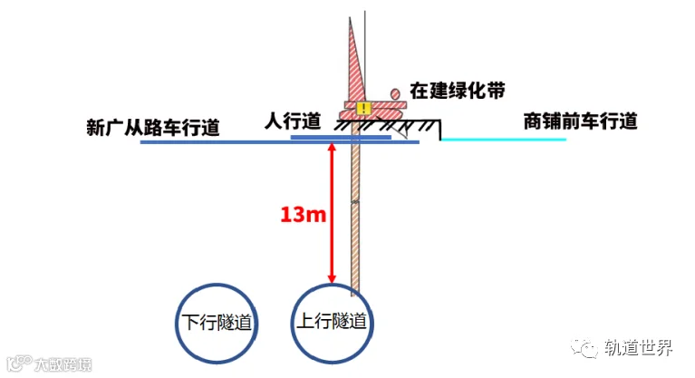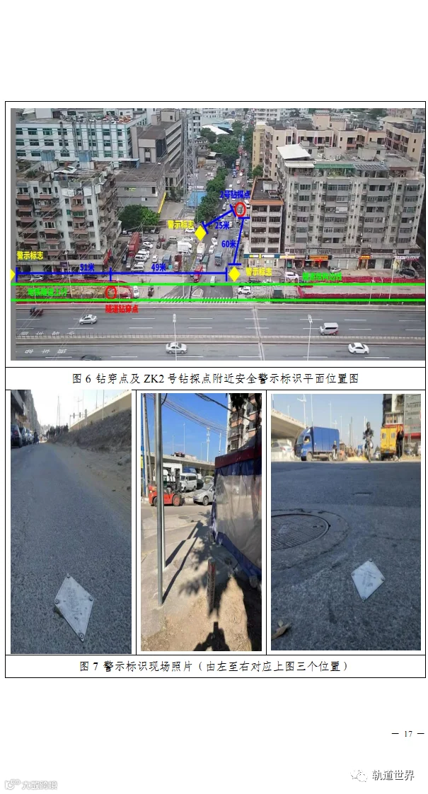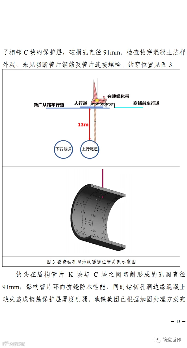 调查报告的图示显示,广州地铁14号线在该区域隧道埋深只有13米,也就是说隧道顶部外沿距离地面为13米,施工人员实际钻深已达约14米。