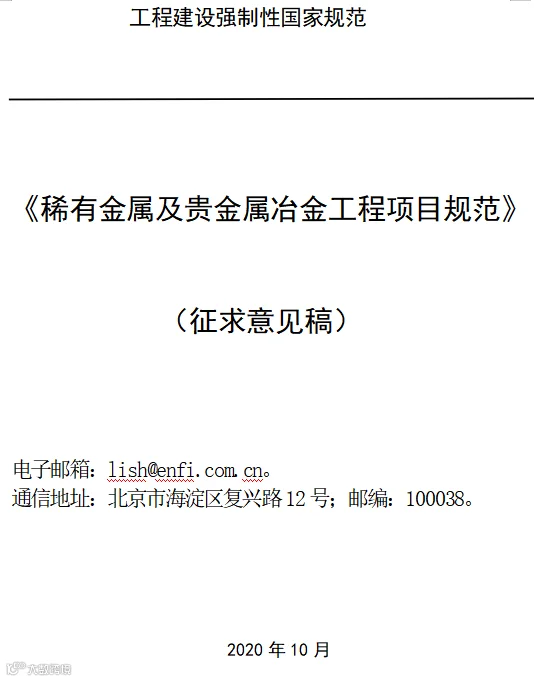 《稀有金属及贵金属冶金工程项目规范(征求意见稿)》