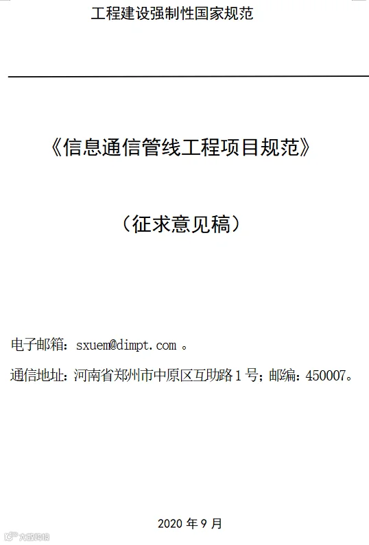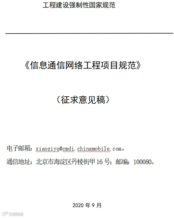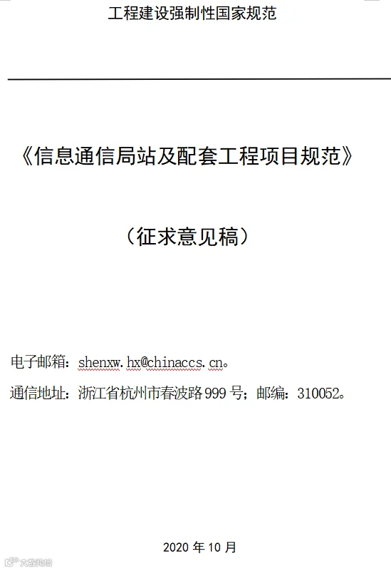 《信息通信局站及配套工程项目规范(征求意见稿)》