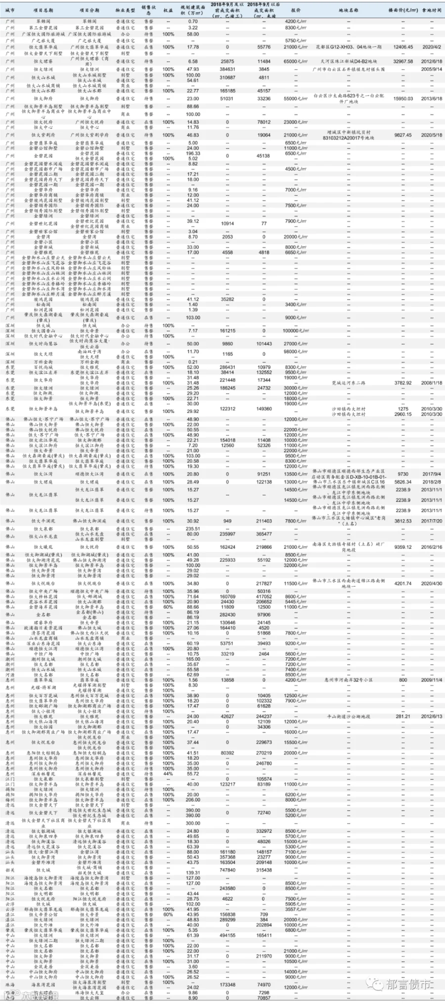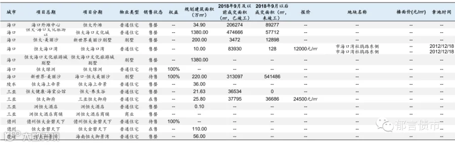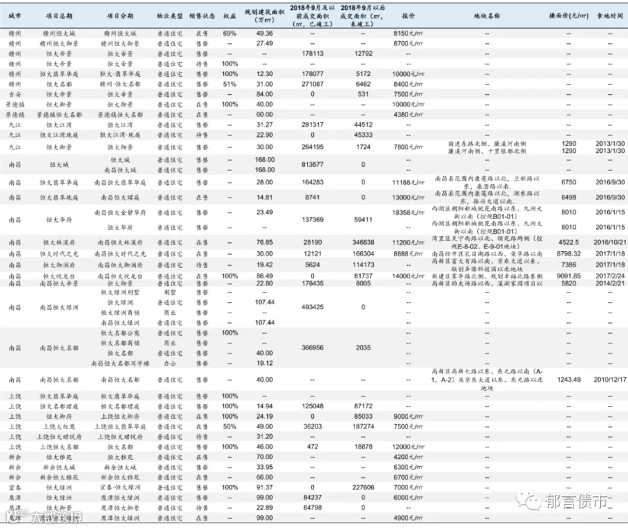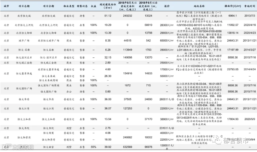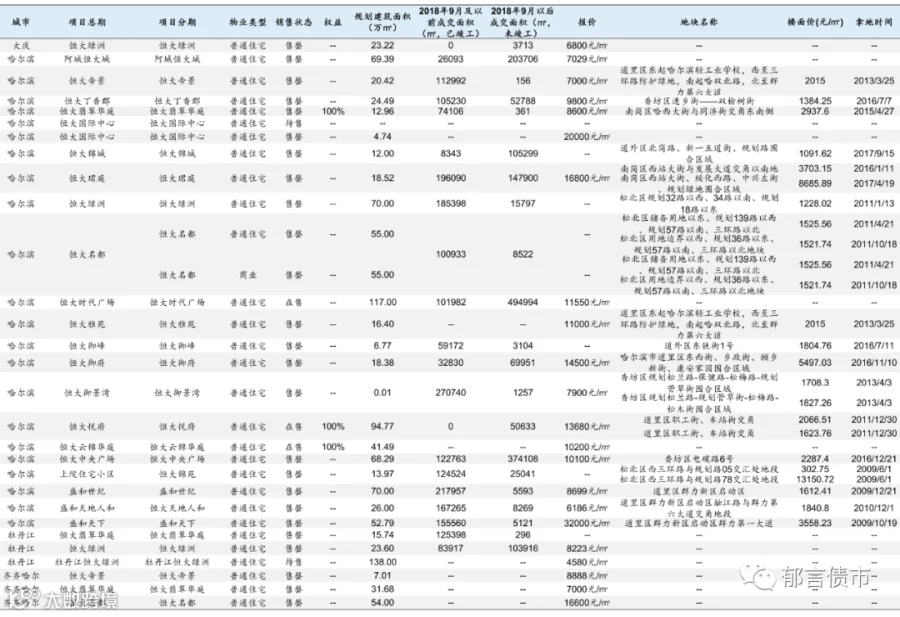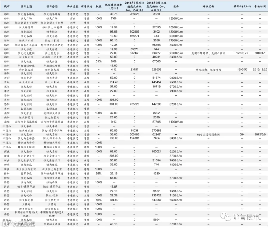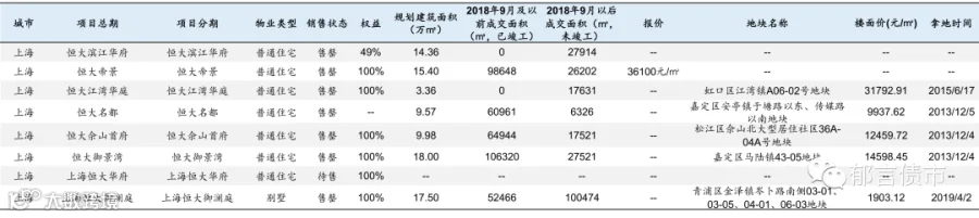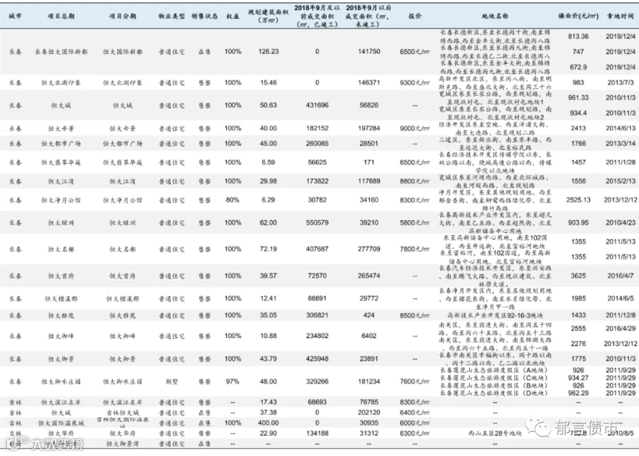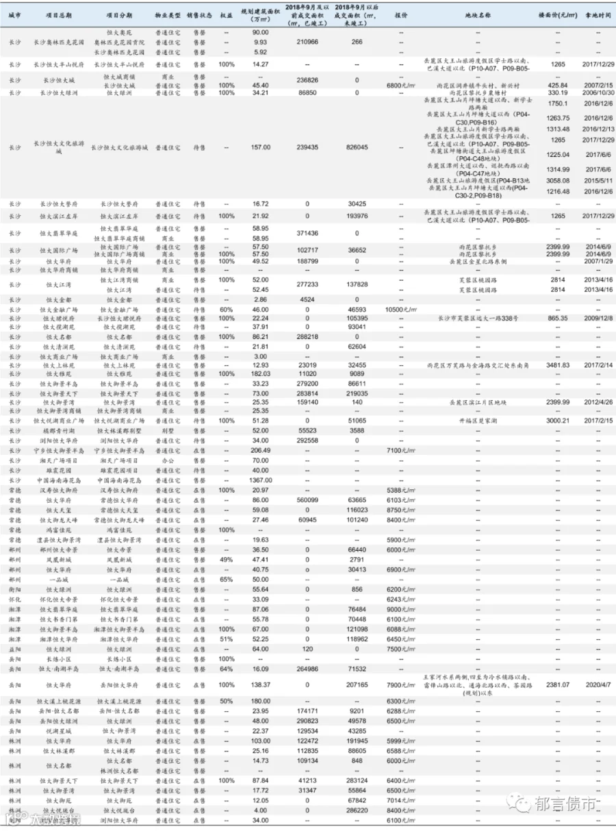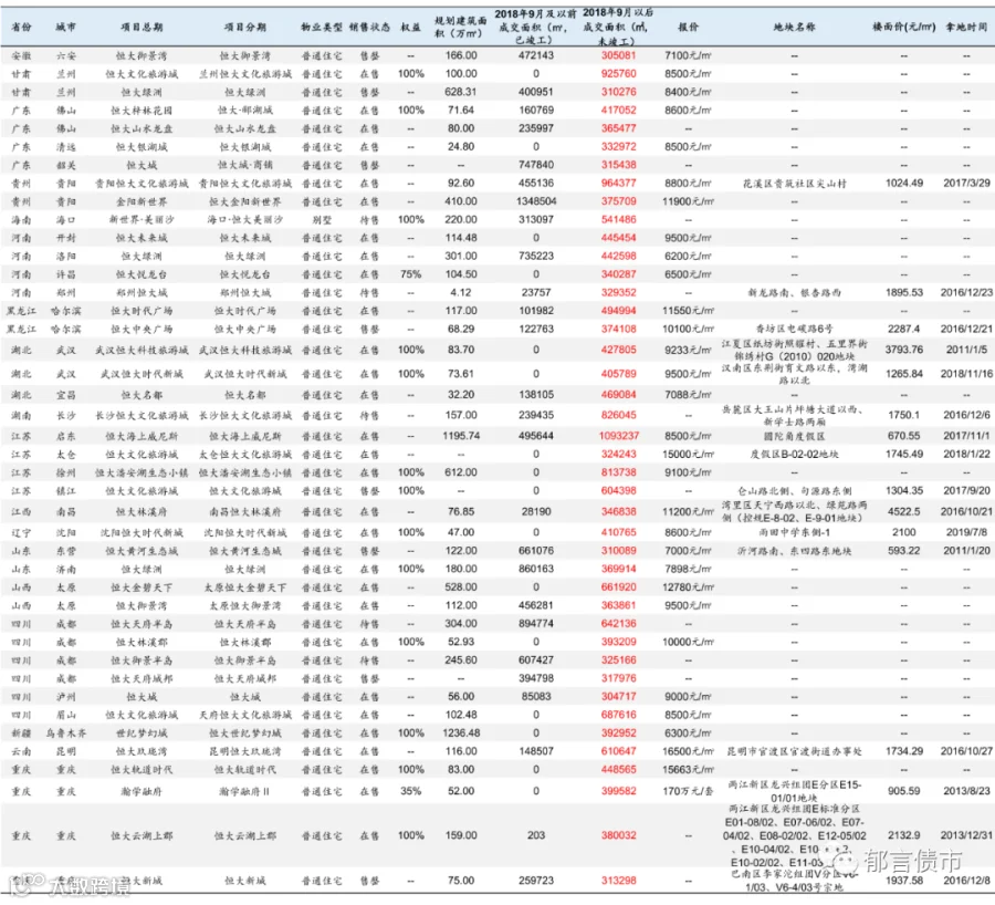 恒大部分位于低能级城市的项目未纳入统计;数据统计存在一定误差。