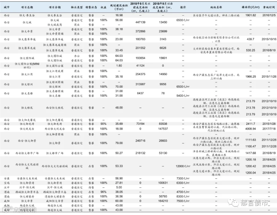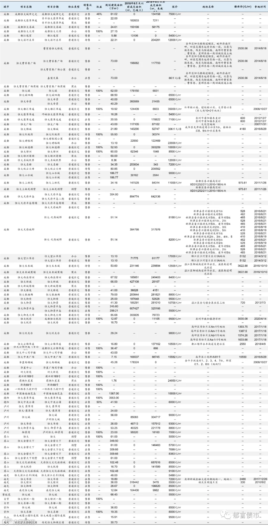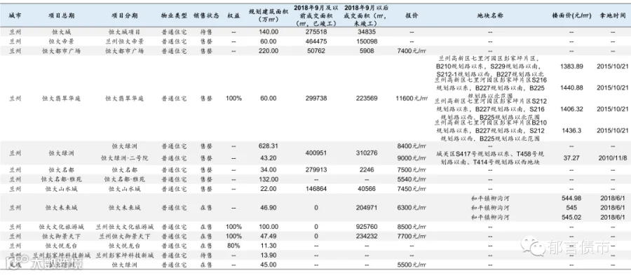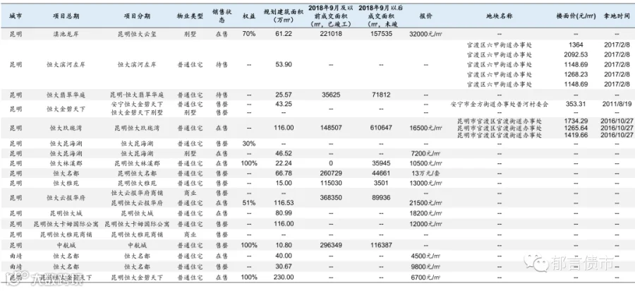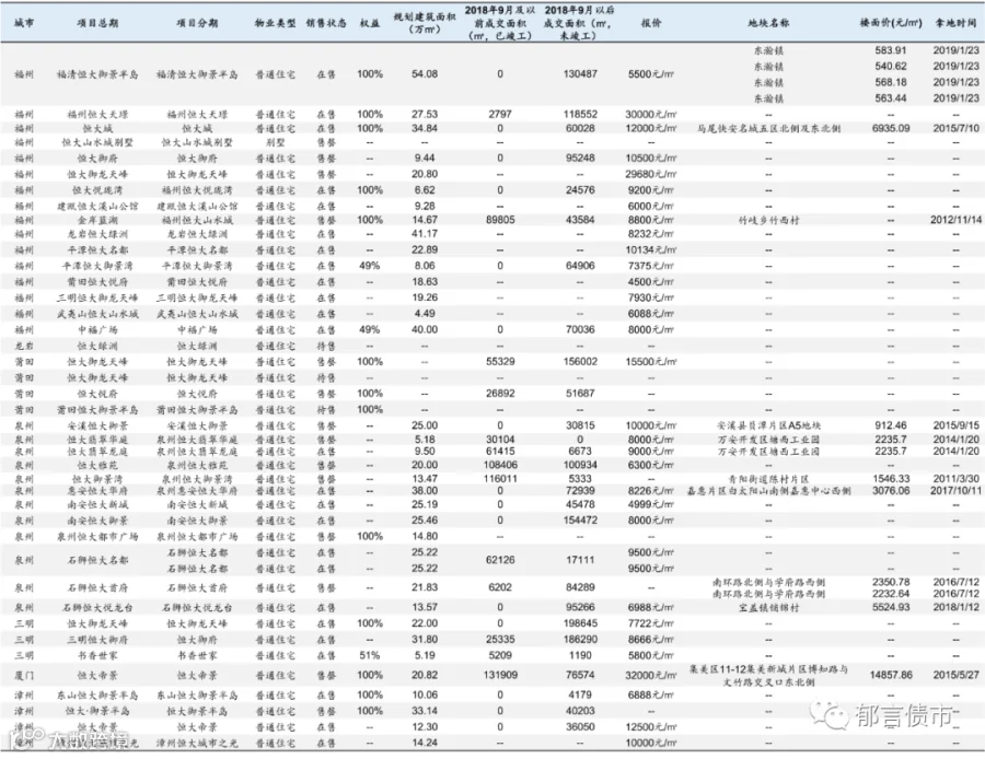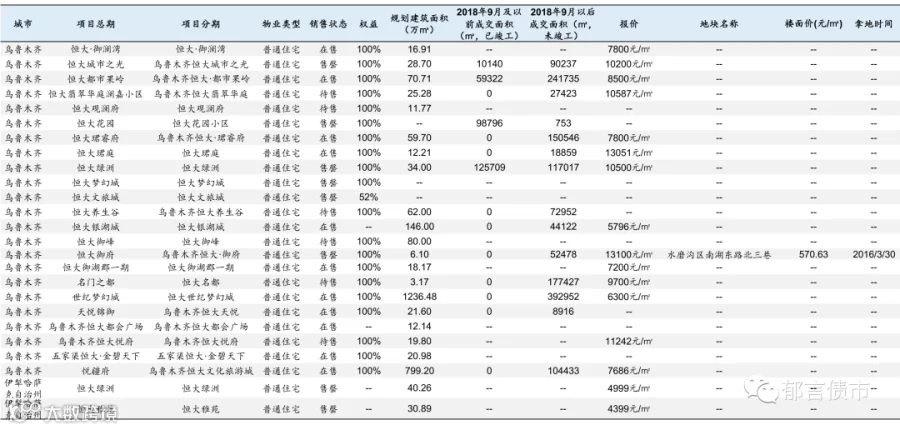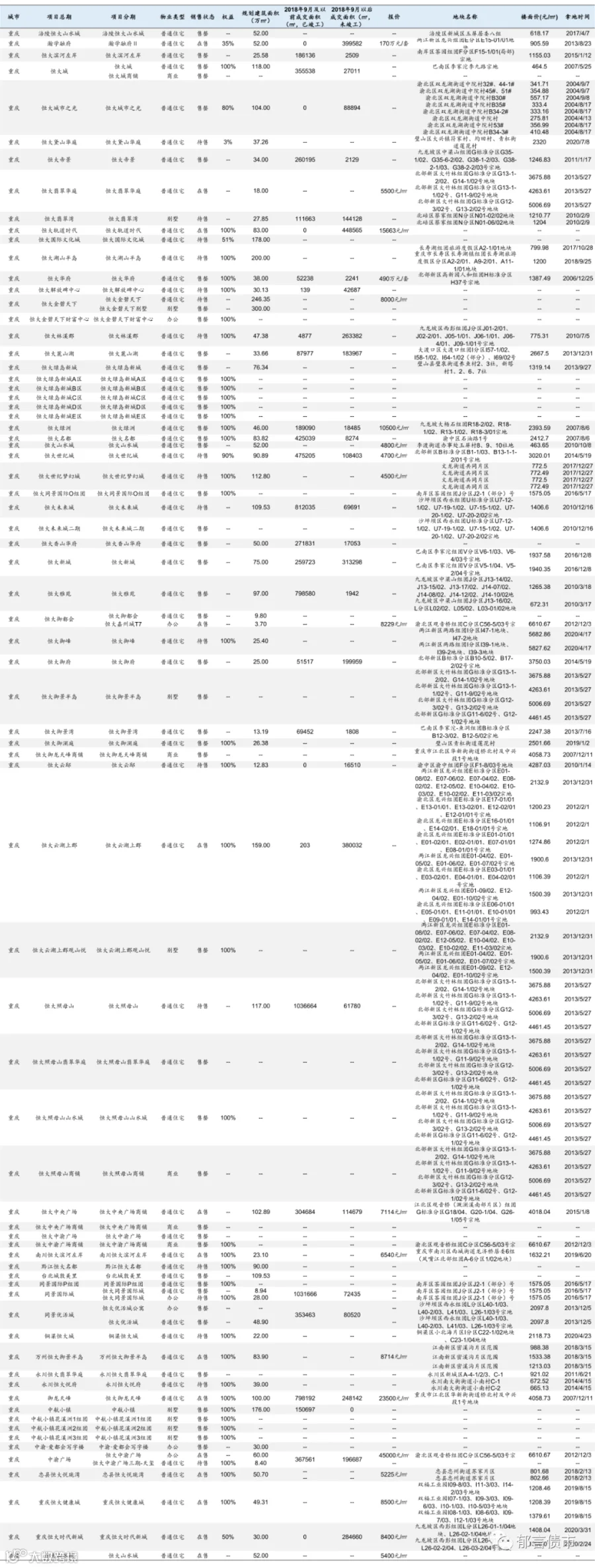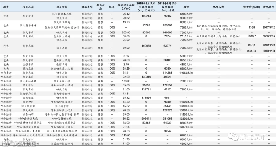 恒大部分位于低能级城市的项目未纳入统计;数据统计存在一定误差。