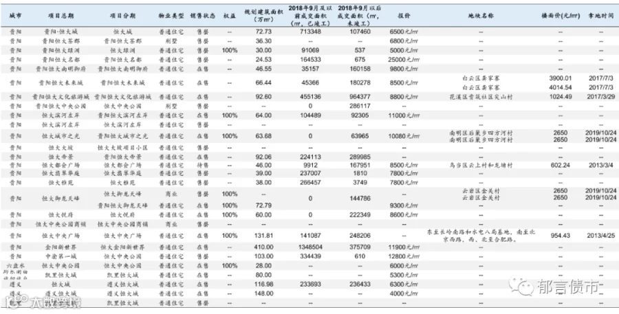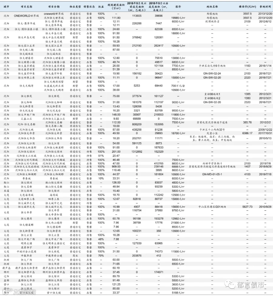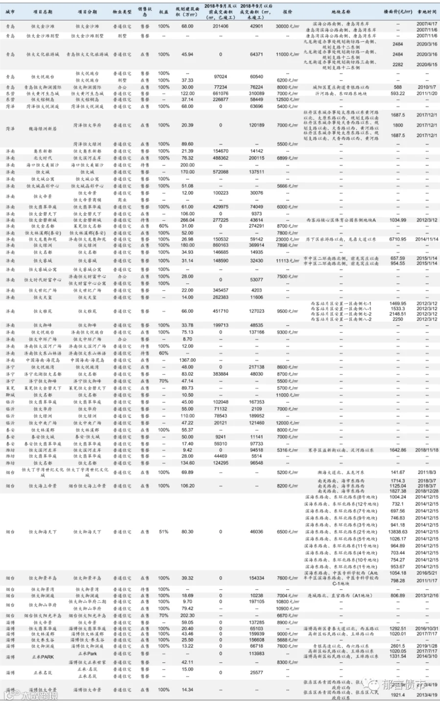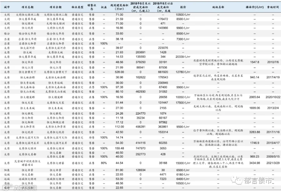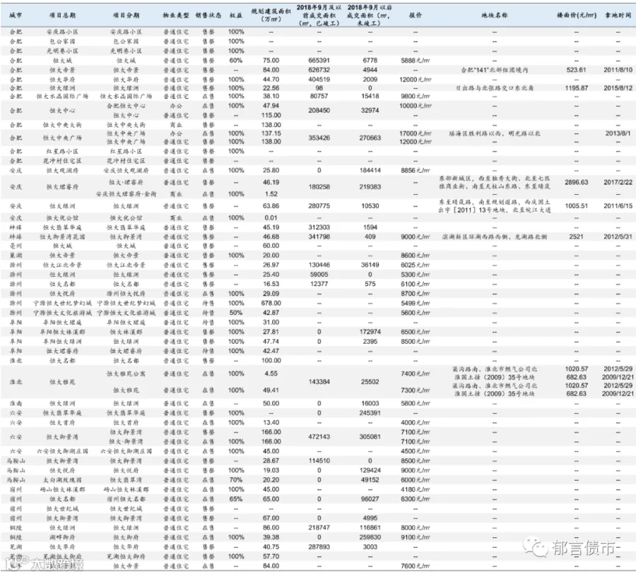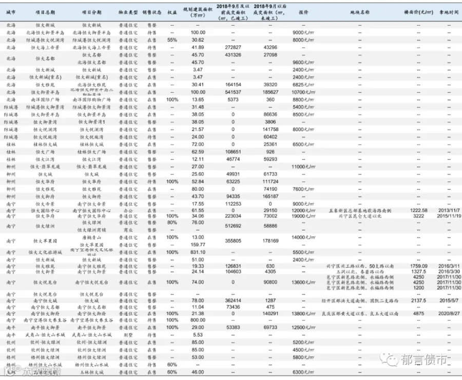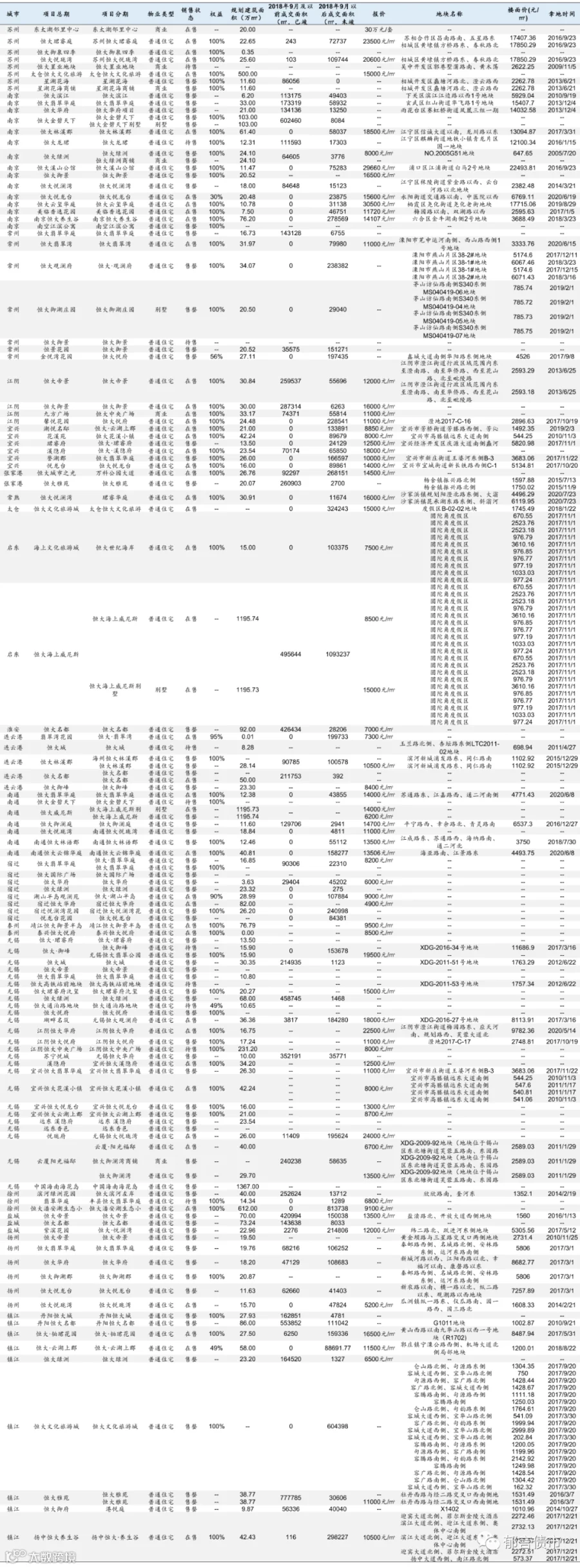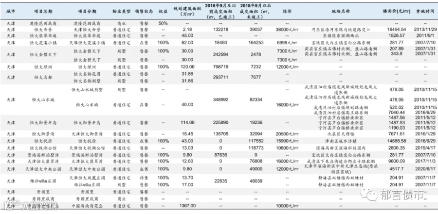 恒大部分位于低能级城市的项目未纳入统计;数据统计存在一定误差。