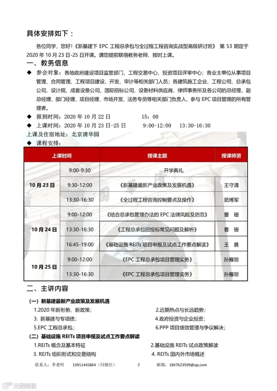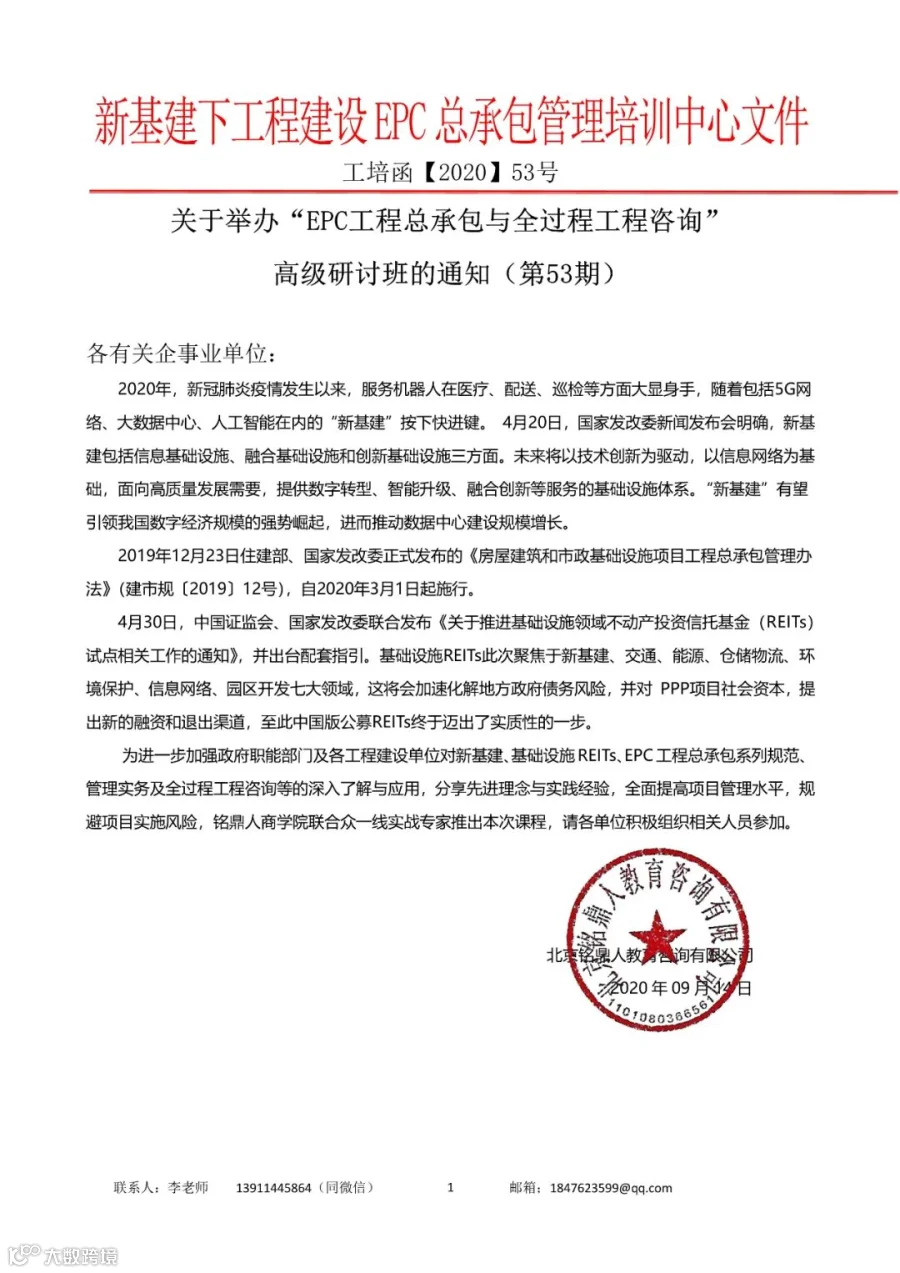 欢迎加入:新基建下工程建设EPC总承包管理—实战型高级研讨班