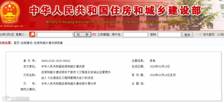 2020年3月3日,住房和城乡建设部公布关于修改《工程造价咨询企业管理办法》《注册造价工程师管理办法》的决定,迅速引发大范围关注:资本进入、门槛降低、挂靠式微、头部引领等……