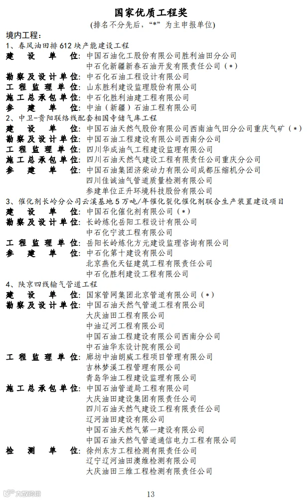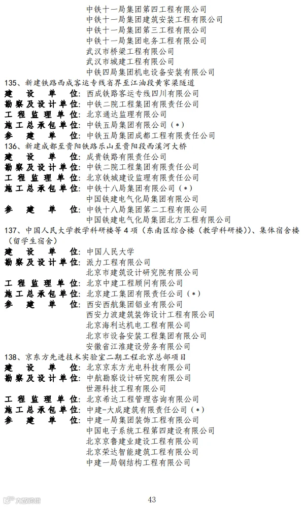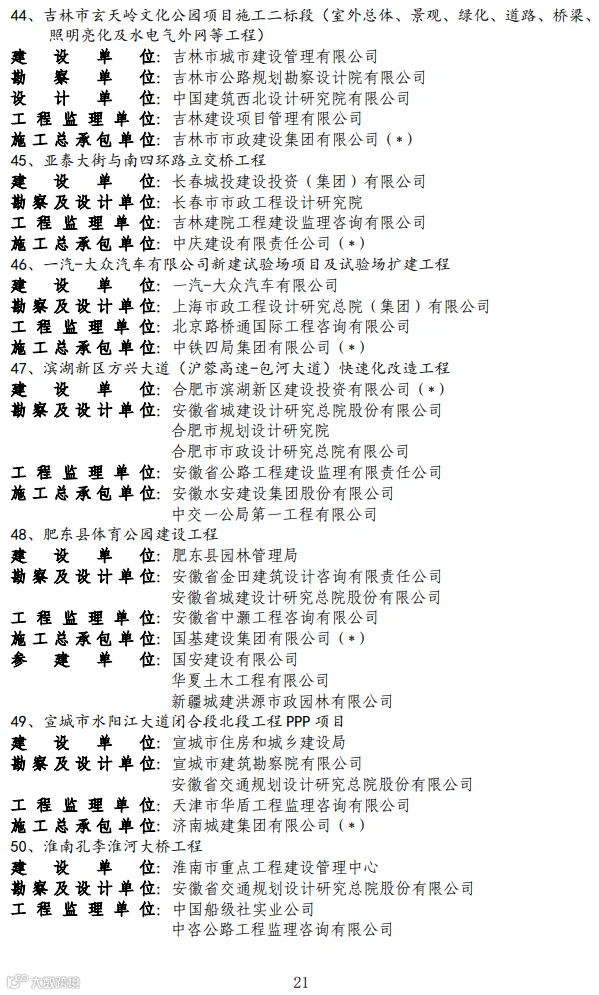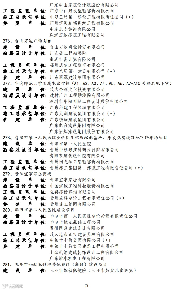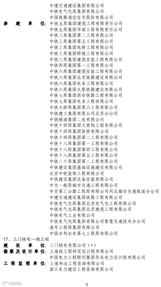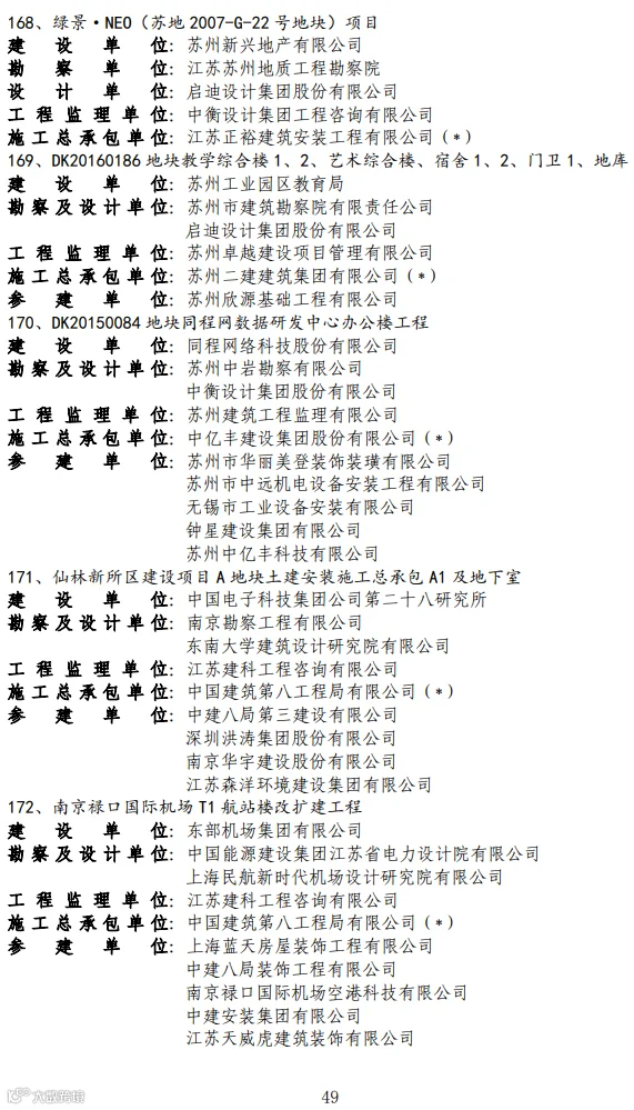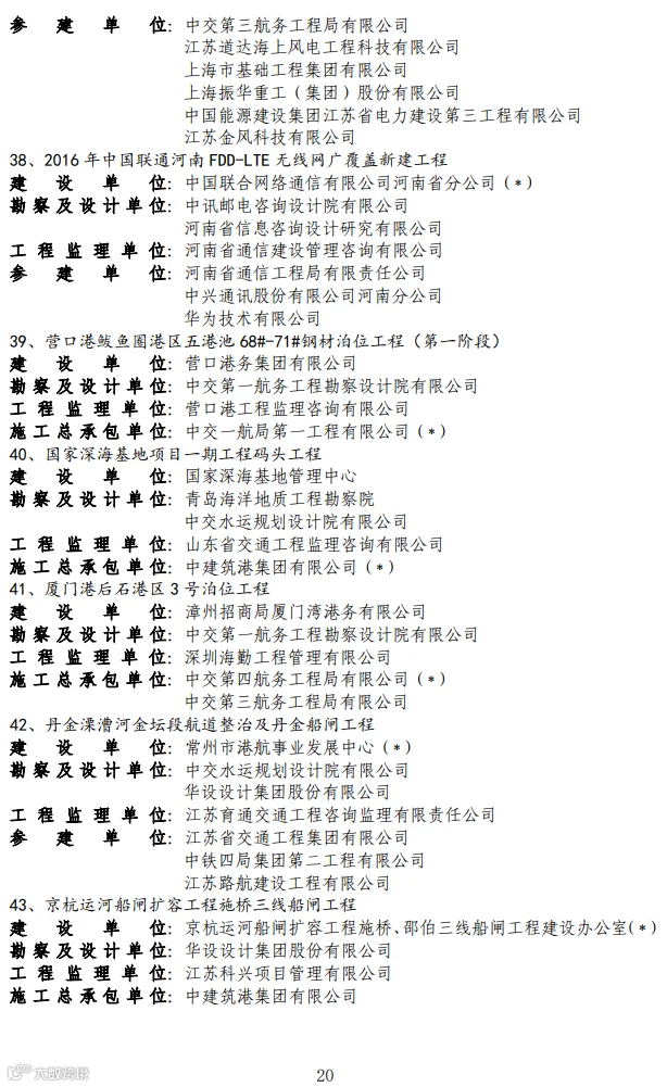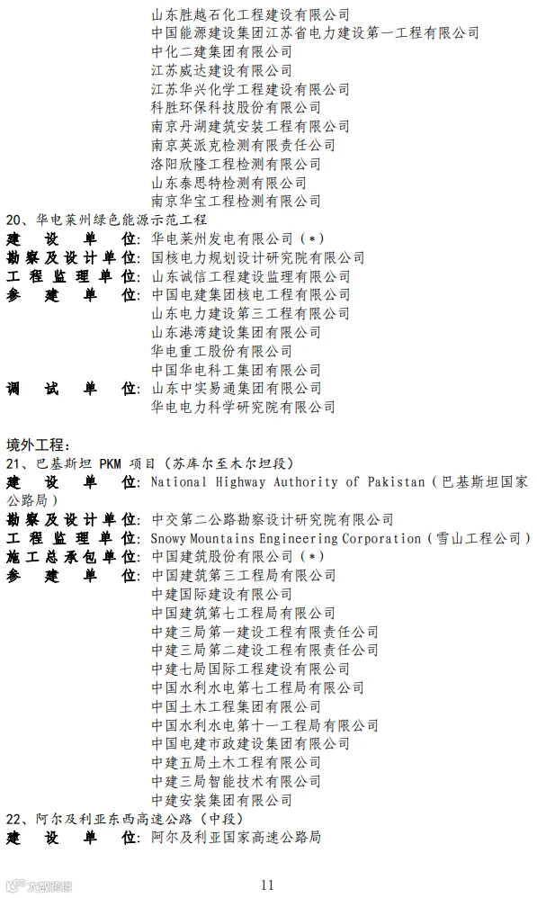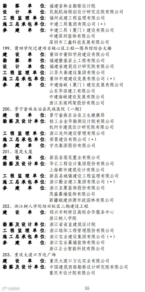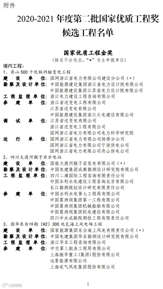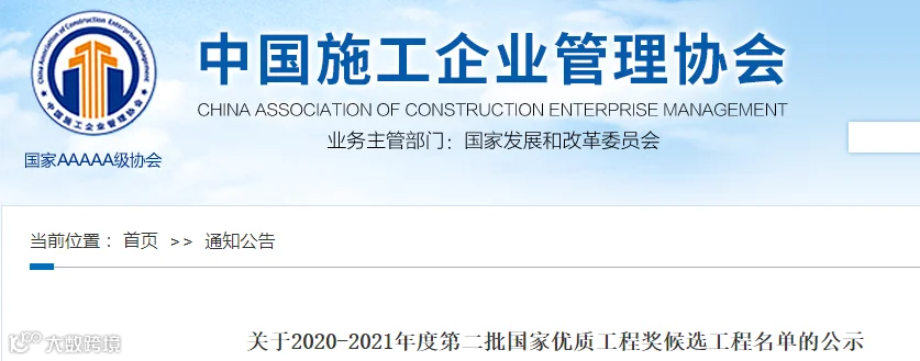 关于2020-2021年度第二批国家优质工程奖候选工程名单的公示