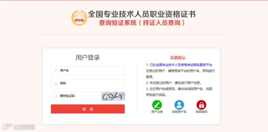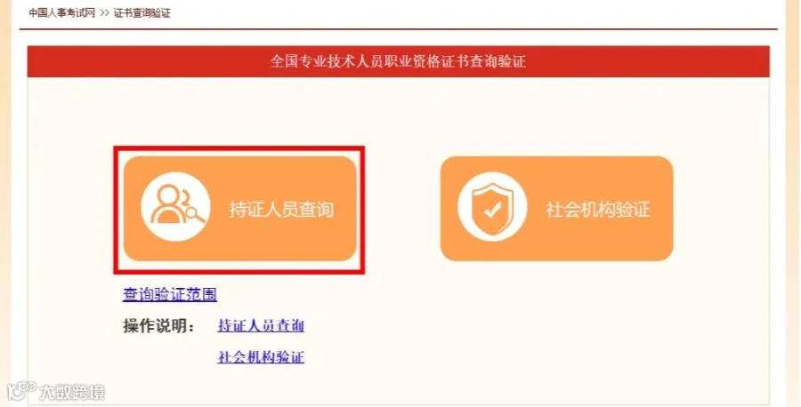 ③点击“持证人员查询”,进入“全国专业技术人员职业资格证书查询验证系统”页面。