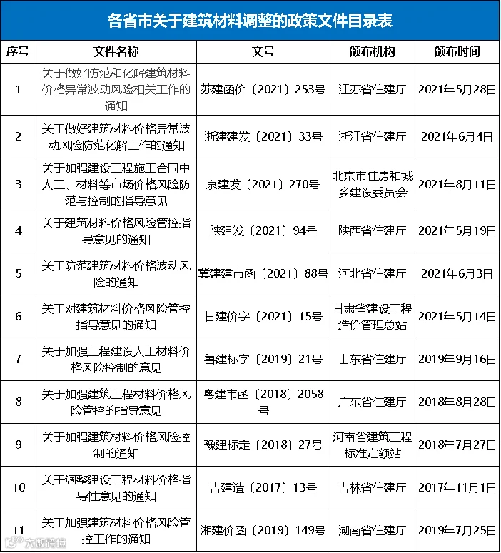 近期,建材价格急剧波动,福建、漳州等地发布预警,合肥发文加强建设工程人工、材料市场价格风险约定管理工作,明确了调差的计算方法。