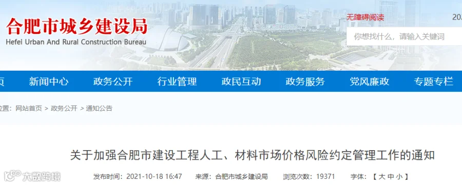 合肥市住建局于10月18日发布了《关于加强合肥市建设工程人工、材料市场价格风险约定管理工作的通知》,自2021年11月15号起施行。